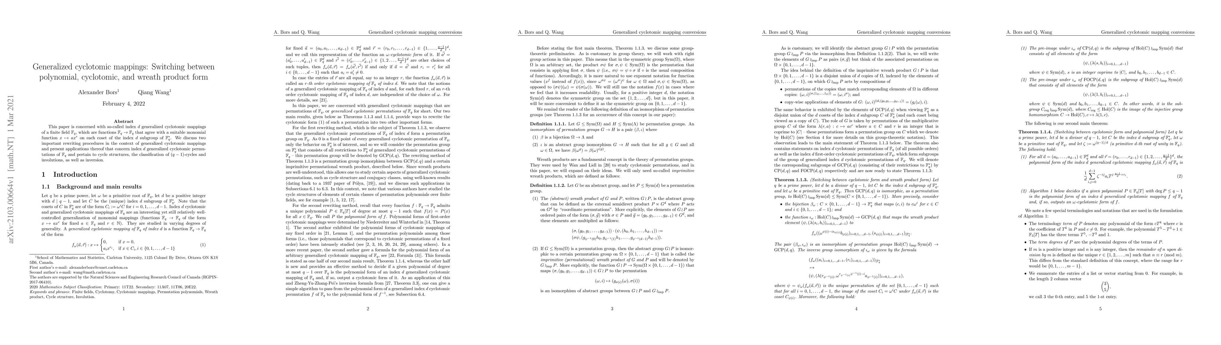 This paper explores generalized cyclotomic mappings between finite fields, focusing on rewriting procedures that aid in understanding cycle structures and classification of specific permutations.