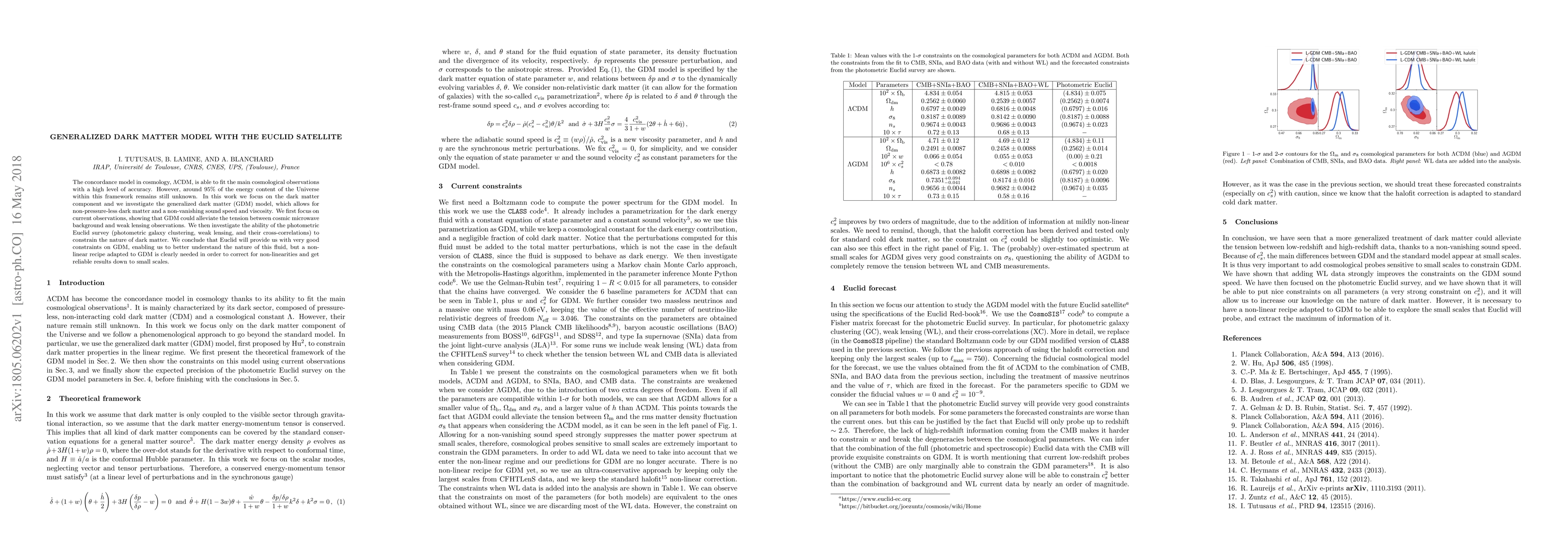 This paper explores a generalized dark matter (GDM) model that accounts for non-pressure-less dark matter with sound speed and viscosity. It finds that GDM could resolve discrepancies between cosmic microwave background and weak lensing observations, and concludes that the Euclid satellite's photometric survey will provide strong constraints on GDM, though non-linear corrections are needed for accurate results on small scales.