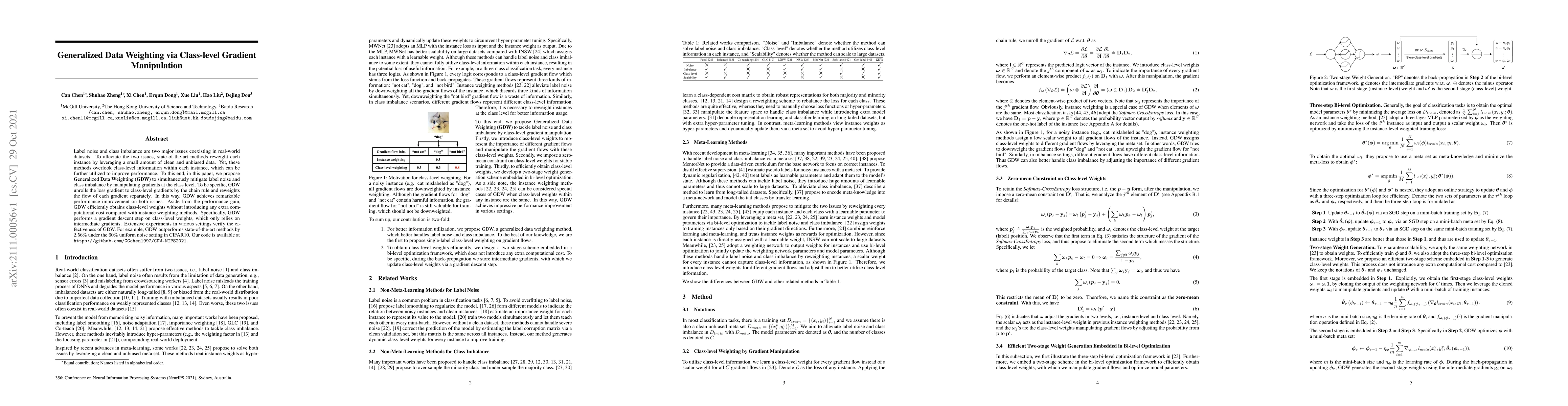 This paper proposes Generalized Data Weighting (GDW) to address label noise and class imbalance in datasets, achieving performance improvements without additional computational cost.
