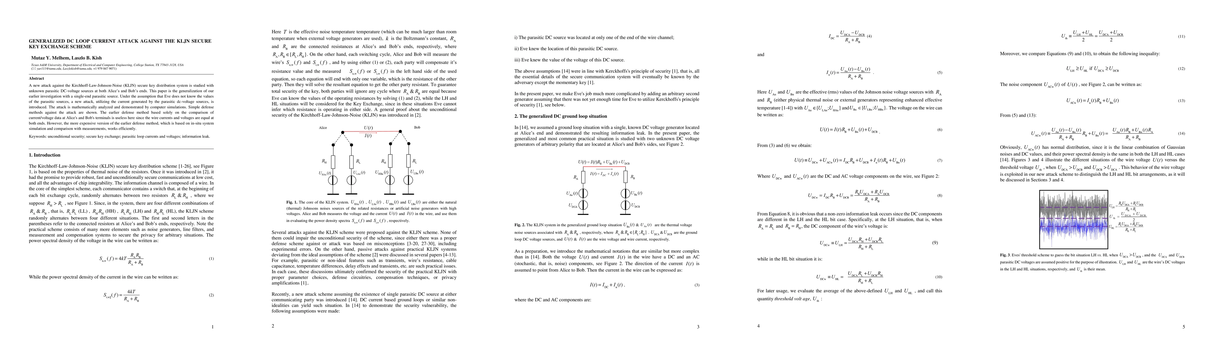 This paper presents a generalized DC loop current attack on the KLJN secure key exchange scheme, considering unknown parasitic DC voltage sources at both Alice's and Bob's ends. The attack exploits currents generated by these parasitic sources, and while earlier defense methods are ineffective, a more costly in situ simulation-based defense remains effective.
