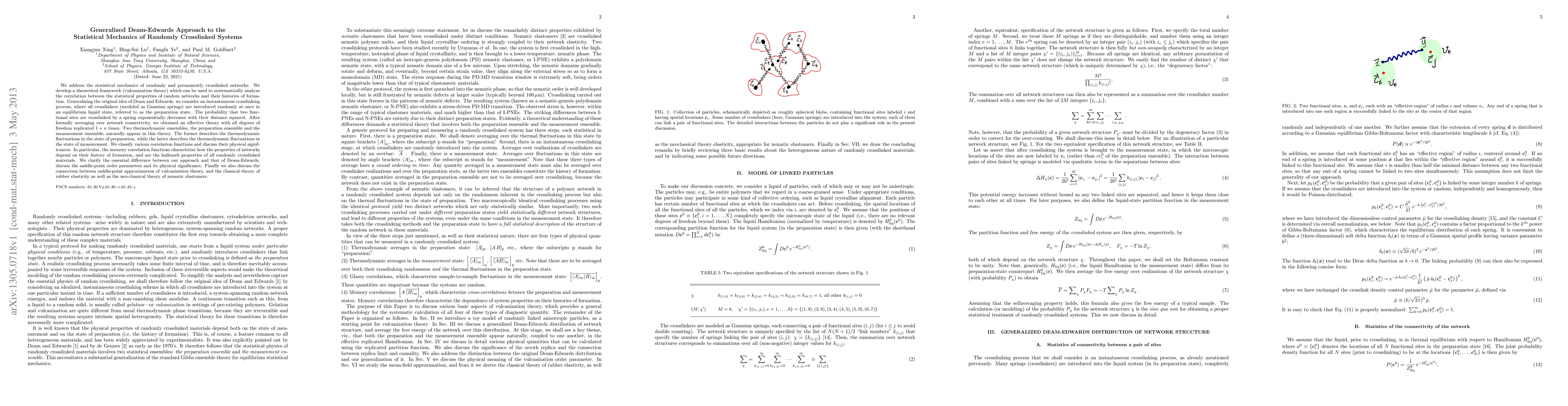 This paper develops a generalized theoretical framework, termed vulcanization theory, to analyze the statistical mechanics of randomly crosslinked networks. It extends the Deam-Edwards approach by considering instantaneous crosslinking in an equilibrium liquid state and introduces two thermodynamic ensembles to describe network formation and measurement fluctuations, highlighting the significance of memory correlation functions in understanding the history-dependent properties of such materials.