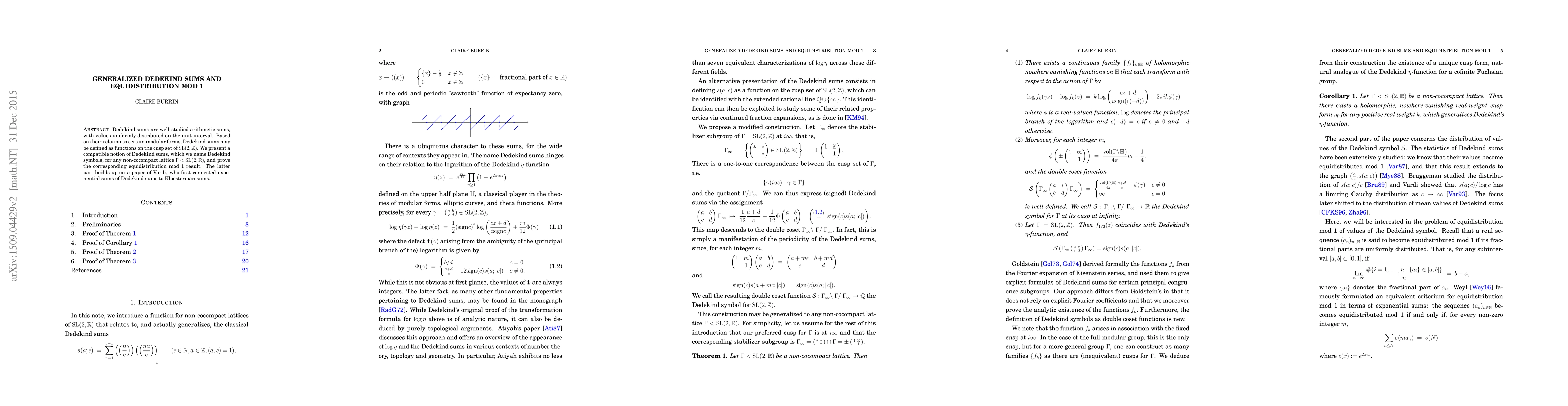 forms, Dedekind sums may be defined as functions on the cusp set of