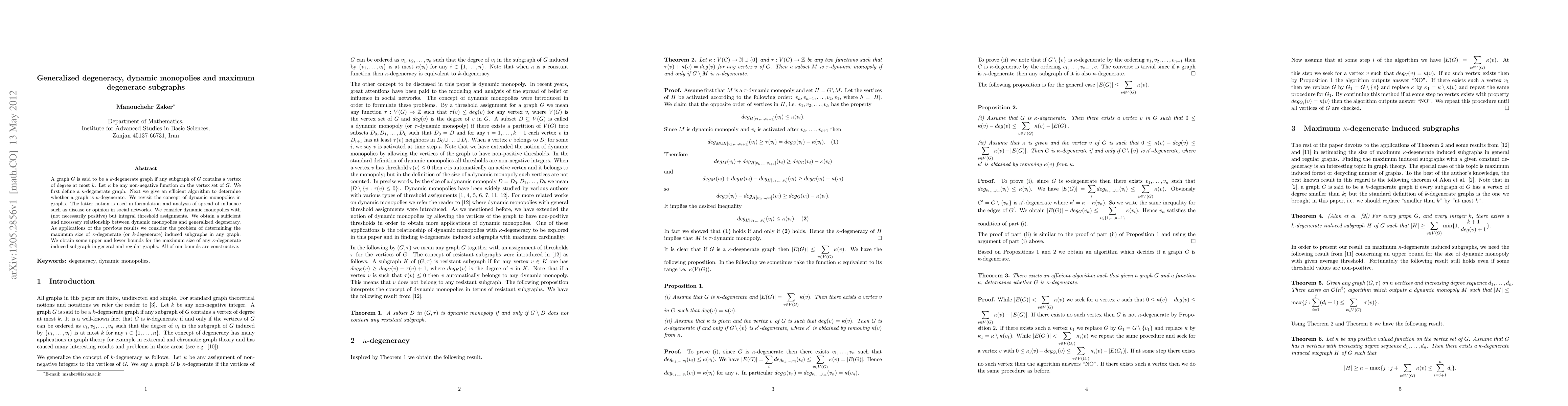 Researchers explore a new connection between dynamic monopolies in graphs and generalized degeneracy, providing efficient algorithms to determine graph degeneracy and bounds for maximum size of degenerate subgraphs.