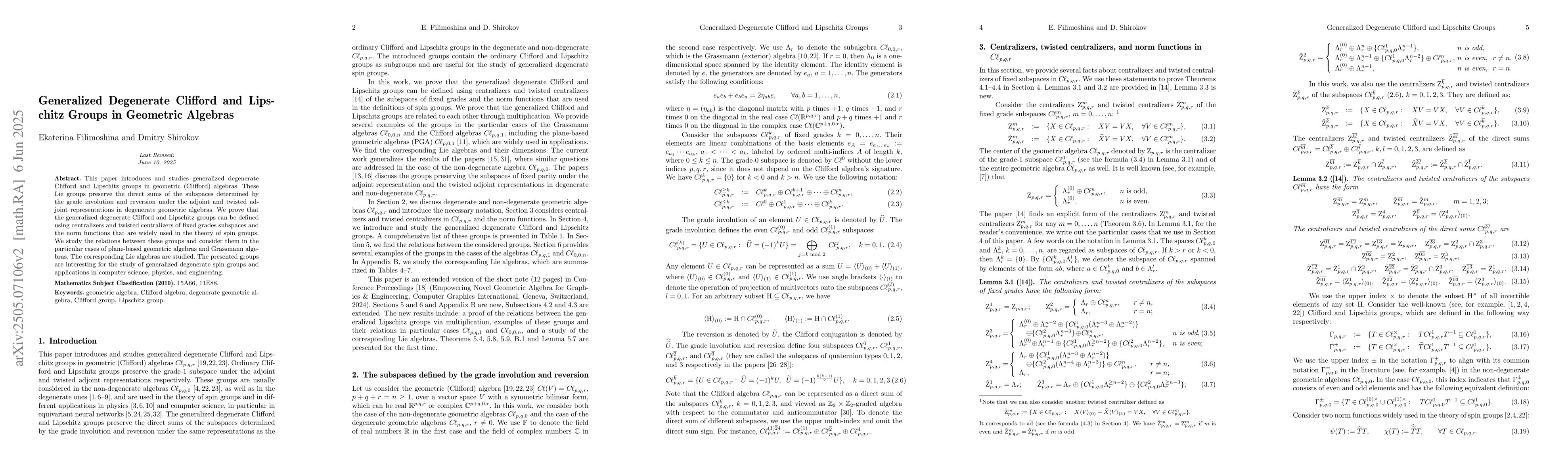 The introduction and detailed study of generalized degenerate Clifford and Lipschitz groups, their definitions, and relations within degenerate geometric algebras.