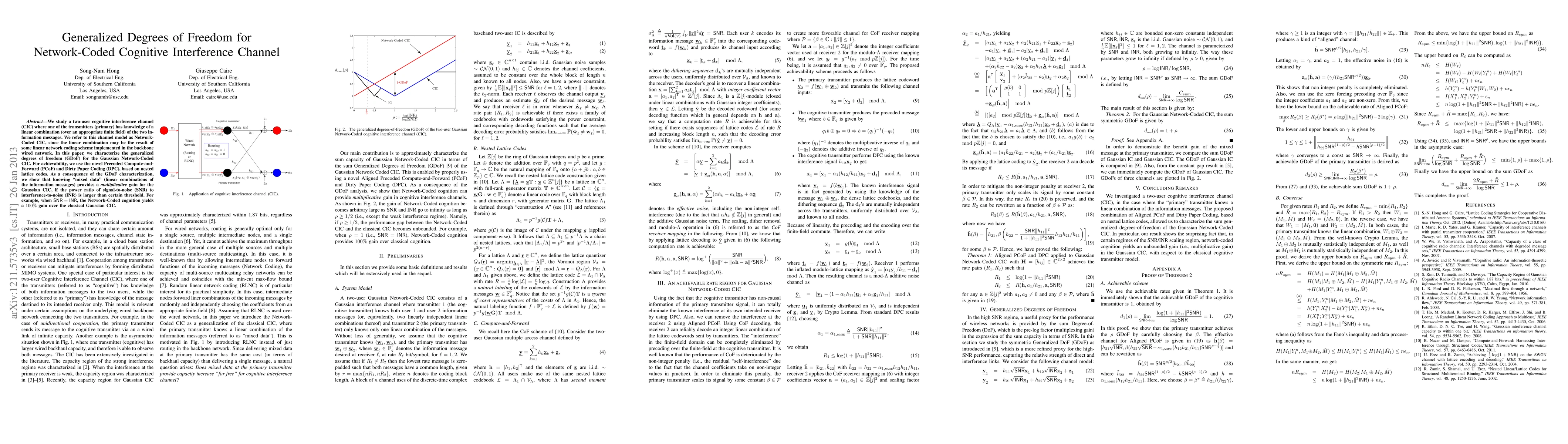 We study a two-user cognitive interference channel (CIC) where one of the transmitters (primary) has knowledge of a linear combination (over an appropriate finite field) of the two information messages. We refer to this channel model as Network-Coded CIC, since the linear combination may be the result of some linear network coding scheme implemented in the backbone wired network.In this paper, we characterize the generalized degrees of freedom (GDoF) for the Gaussian Network-Coded CIC. For achievability, we use the novel Precoded Compute-and-Forward (PCoF) and Dirty Paper Coding (DPC), based on nested lattice codes. As a consequence of the GDoF characterization, we show that knowing "mixed data" (linear combinations of the information messages) provides a {\em multiplicative} gain for the Gaussian CIC, if the power ratio of signal-to-noise (SNR) to interference-to-noise (INR) is larger than certain threshold. For example, when $\SNR=\INR$, the Network-Coded cognition yields a 100% gain over the classical Gaussian CIC.