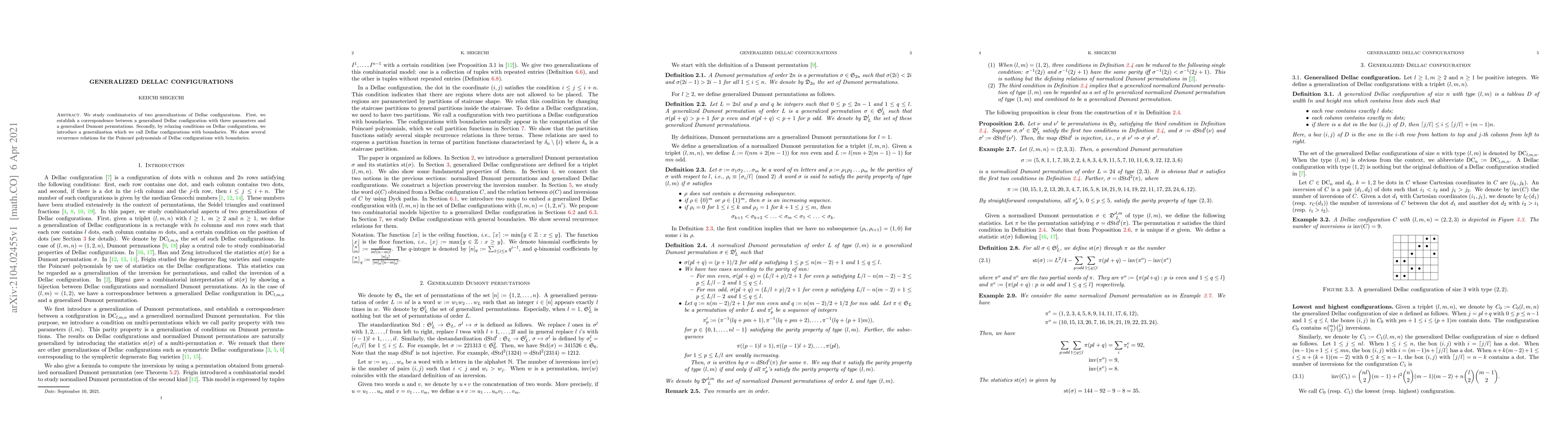 This paper explores two generalizations of Dellac configurations, establishing a connection between generalized Dellac configurations with three parameters and generalized Dumont permutations, and introducing Dellac configurations with boundaries. It also derives recurrence relations for the Poincaré polynomials of the latter.