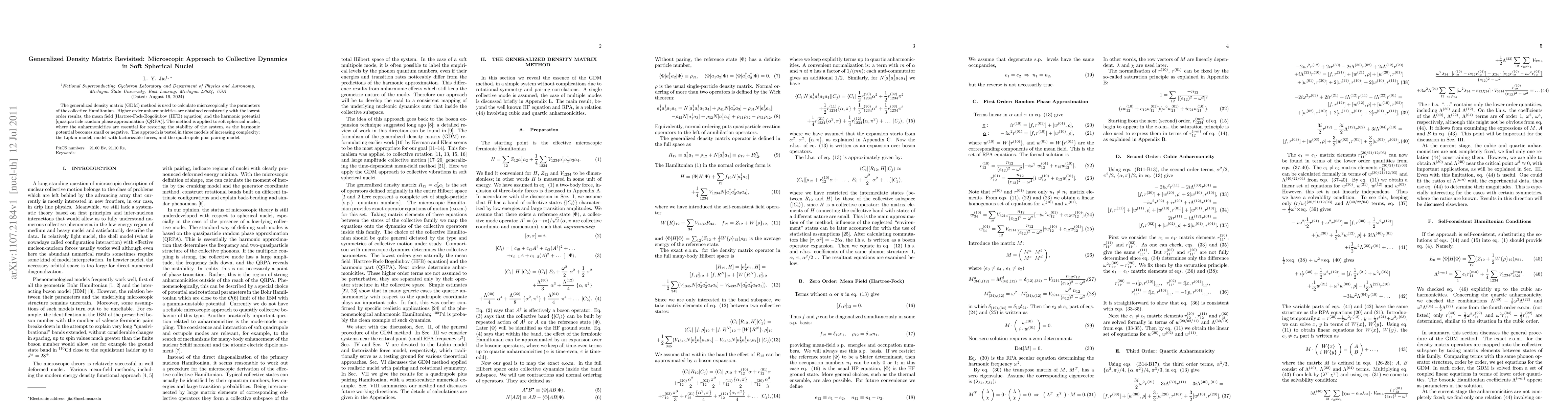 The paper revisits the generalized density matrix method to microscopically determine collective Hamiltonian parameters for soft spherical nuclei, incorporating higher-order anharmonicities. The approach is validated through three progressively complex models, demonstrating its effectiveness in restoring system stability.