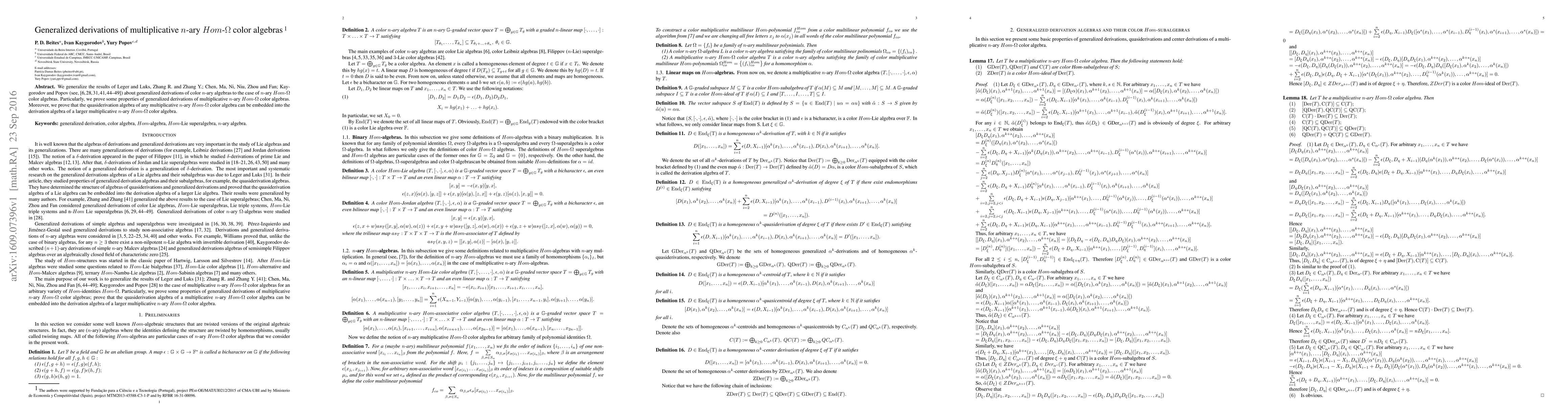 Summary: This paper generalizes the concept of generalized derivations in color $n$-ary algebras to $n$-ary Hom-$\Omega$ color algebras, proving properties of their multiplicative derivations and showing that the quasiderivation algebra can be embedded into a larger derivation algebra.