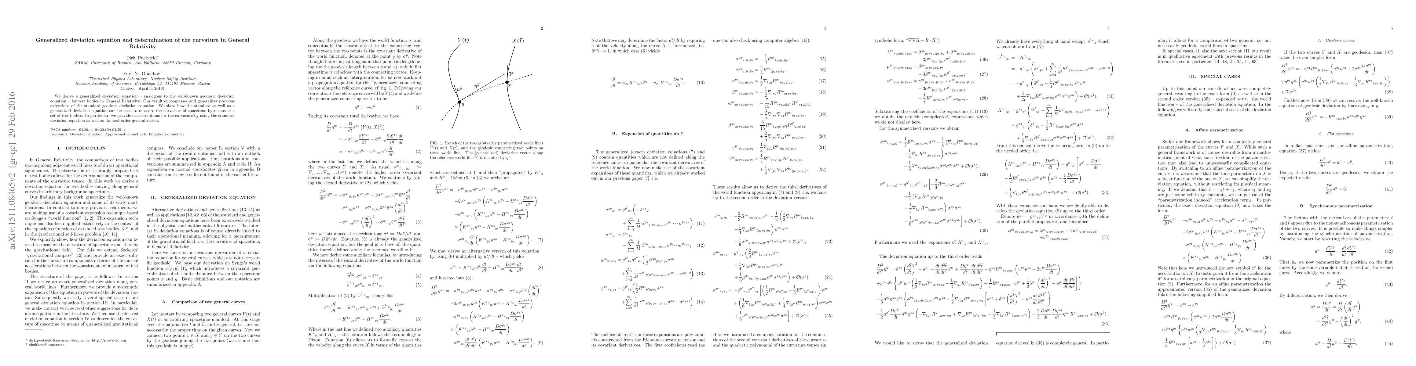This paper derives a generalized deviation equation for test bodies in General Relativity, extending the standard geodesic deviation equation, and demonstrates its application in measuring spacetime curvature using both the standard and the new generalized equations.