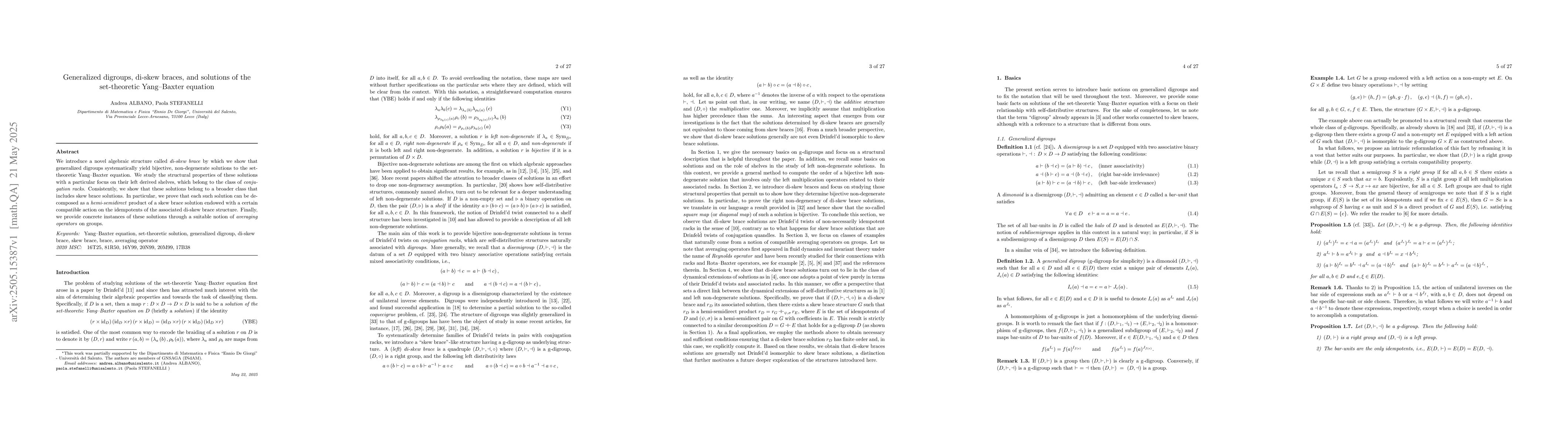 The paper introduces di-skew braces and explores their structural properties, demonstrating their connection to generalized digroups and solutions to the set-theoretic Yang-Baxter equation.