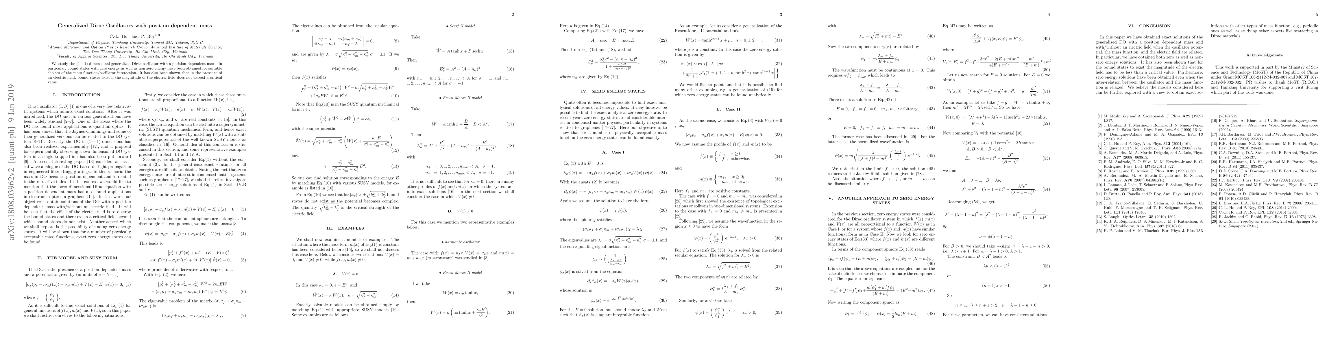 This paper investigates the $(1+1)$ dimensional generalized Dirac oscillator featuring a position-dependent mass, revealing bound states with both zero and non-zero energy under specific conditions. It also demonstrates the existence of bound states in an electric field, provided the field's magnitude is below a critical threshold.