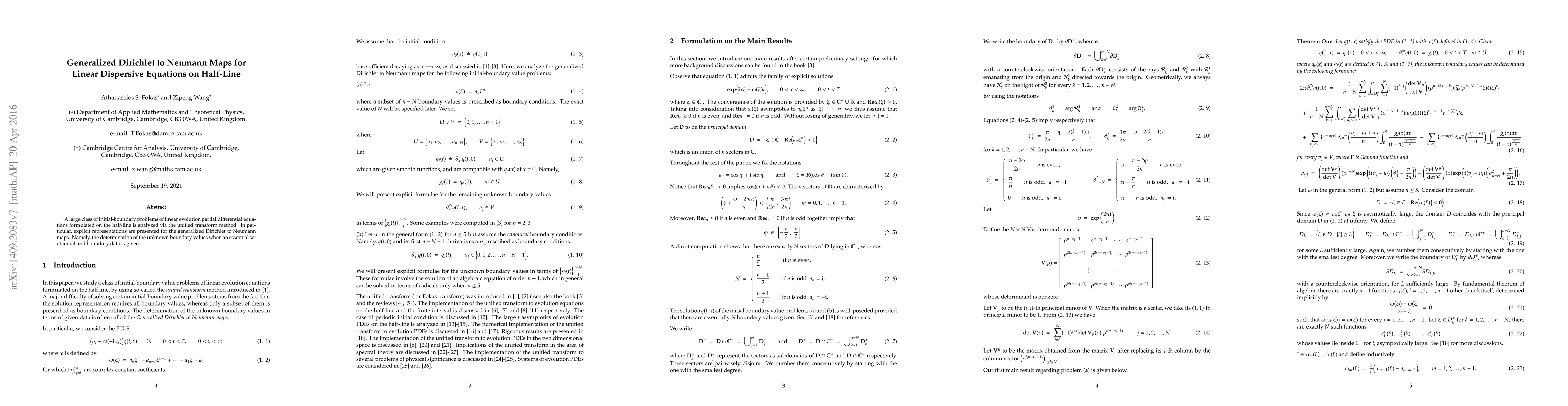 Summary: This paper analyzes initial-boundary value problems for linear evolution PDEs on the half-line using the unified transform method, presenting explicit formulae for generalized Dirichlet to Neumann maps to determine boundary values from given data.