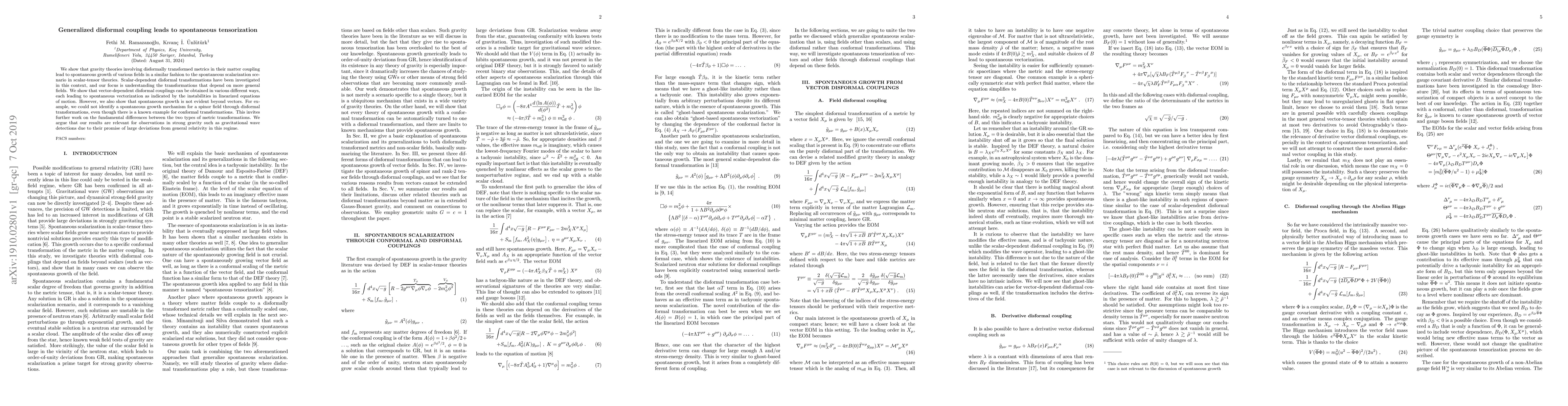 This paper investigates how generalized disformal couplings in gravity theories can lead to spontaneous growth of vector fields, akin to scalarization in scalar-tensor theories, while noting no such growth for spinor fields. The findings suggest significant deviations from general relativity in strong gravity regimes, potentially impacting gravitational wave detections.