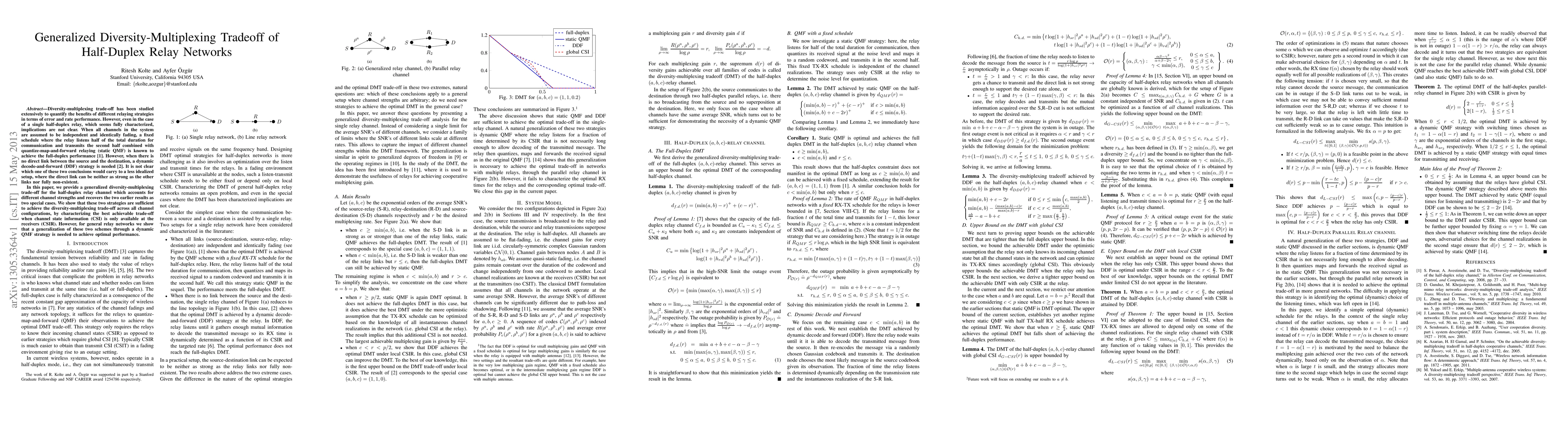 This paper generalizes the diversity-multiplexing tradeoff for half-duplex relay networks, showing that static QMF and dynamic DDF strategies achieve optimal performance under different channel conditions. It reveals that a dynamic QMF approach is necessary for optimal performance in general relay networks.