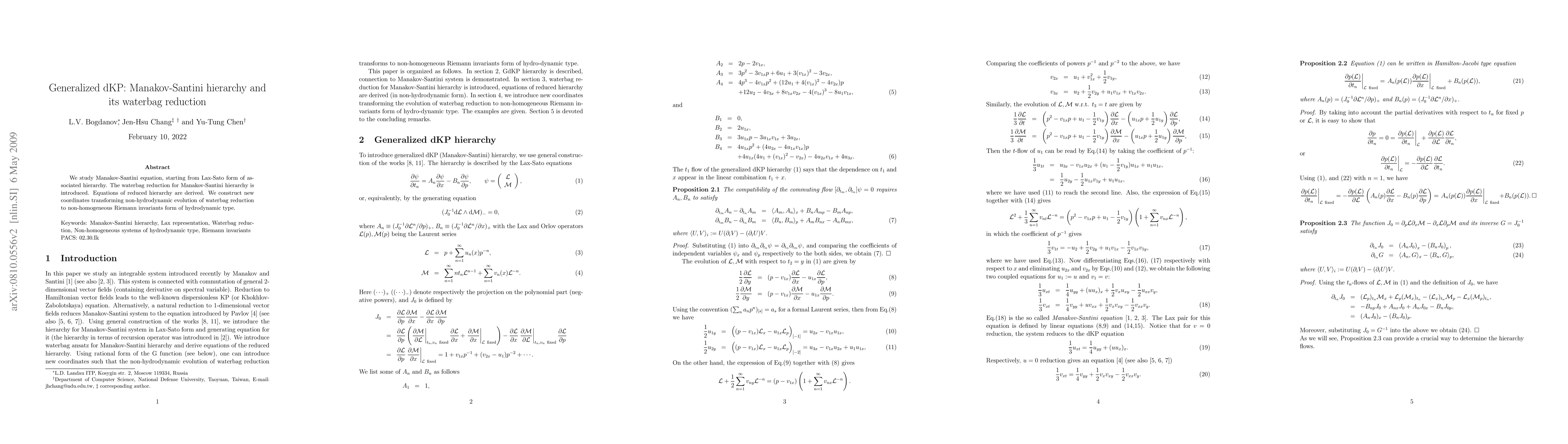 This paper investigates the Manakov-Santini equation within the context of its Lax-Sato form hierarchy, introducing a waterbag reduction. It derives the equations of the reduced hierarchy and constructs new coordinates to transform the non-hydrodynamic evolution into a non-homogeneous Riemann invariants form of hydrodynamic type.