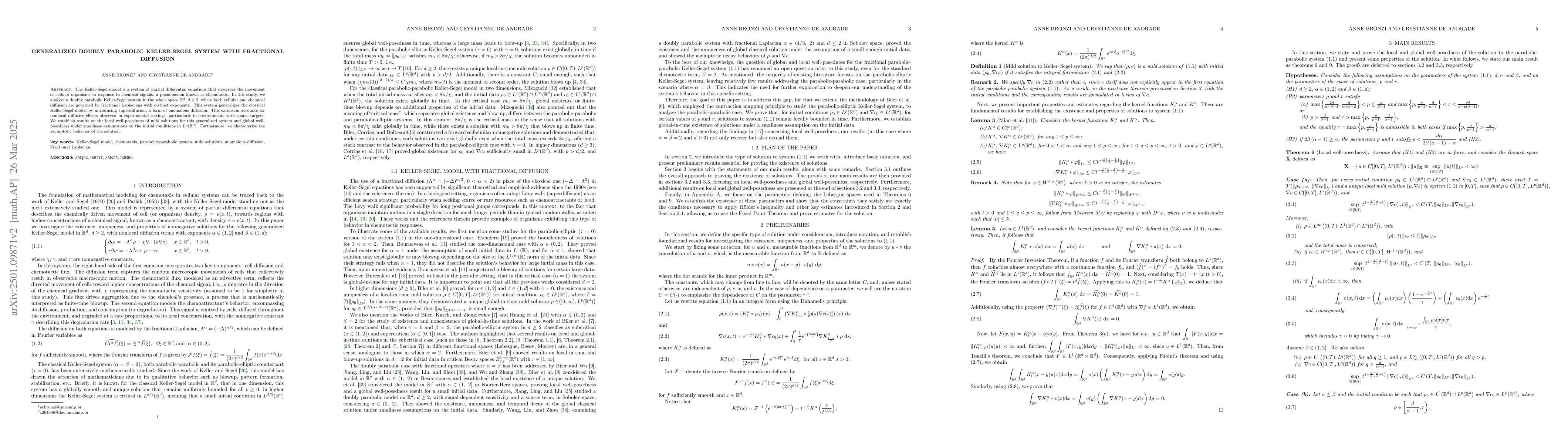 This paper analyzes a generalized doubly parabolic Keller-Segel system with fractional diffusion in $\mathbb{R}^d$. It establishes local well-posedness of mild solutions and global well-posedness under smallness assumptions, introducing superdiffusion to account for nonlocal effects in chemotaxis.