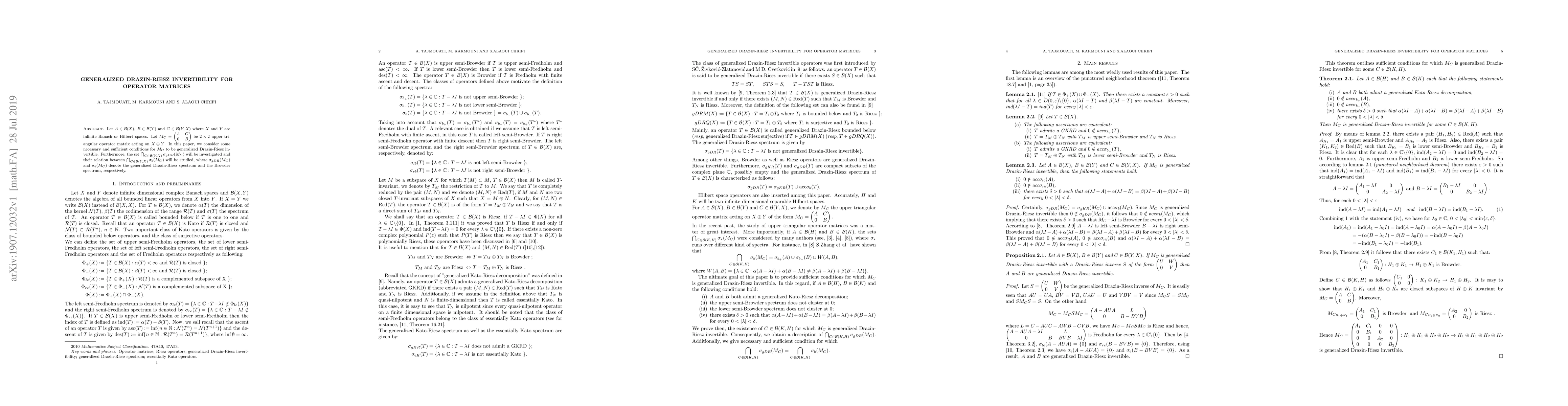 Let $A\in\mathcal{B}(X)$, $B\in\mathcal{B}(Y)$ and $C\in\mathcal{B}(Y,X)$ where $X$ and $Y$ are infinite Banach or Hilbert spaces. Let $M_{C}=\begin{pmatrix} A & C\cr 0 & B \end{pmatrix}$ be $2\times 2$ upper triangular operator matrix acting on $X\oplus Y$. In this paper, we consider some necessary and sufficient conditions for $M_{C}$ to be generalized Drazin-Riesz invertible. Furthermore, the set $\bigcap_{C\in \mathcal{B}(Y,X)}\sigma_{gDR}(M_{C})$ will be investigated and their relation between $\bigcap_{C\in \mathcal{B}(Y,X)}\sigma_{b}(M_{C})$ will be studied, where $\sigma_{gDR}(M_{C})$ and $\sigma_{b}(M_{C})$ denote the generalized Drazin-Riesz spectrum and the Browder spectrum, respectively.