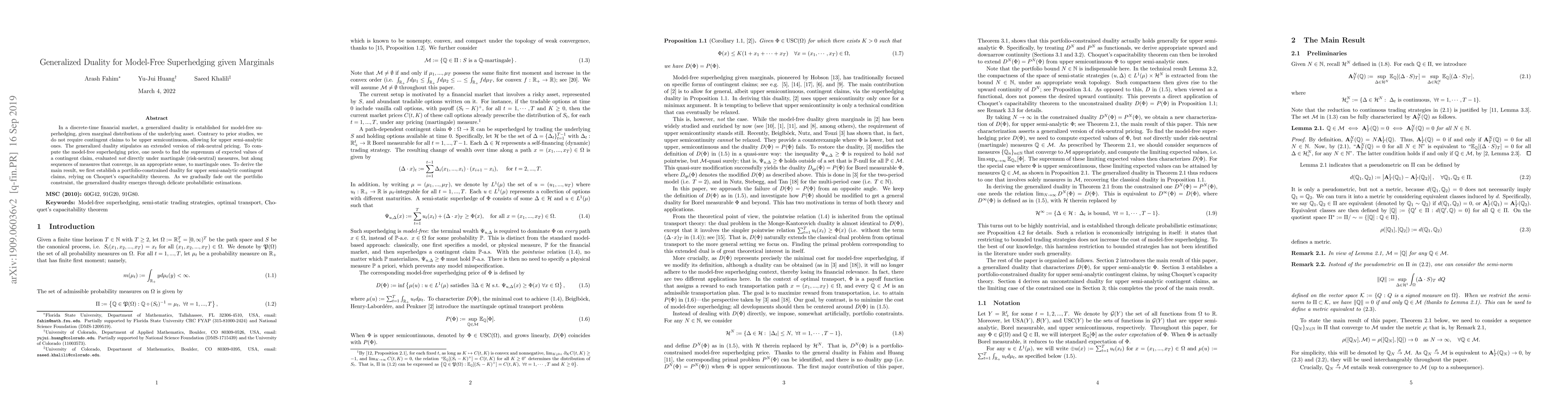 In a discrete-time financial market, a generalized duality is established for model-free superhedging, given marginal distributions of the underlying asset. Contrary to prior studies, we do not require contingent claims to be upper semicontinuous, allowing for upper semi-analytic ones. The generalized duality stipulates an extended version of risk-neutral pricing. To compute the model-free superhedging price, one needs to find the supremum of expected values of a contingent claim, evaluated not directly under martingale (risk-neutral) measures, but along sequences of measures that converge, in an appropriate sense, to martingale ones. To derive the main result, we first establish a portfolio-constrained duality for upper semi-analytic contingent claims, relying on Choquet's capacitability theorem. As we gradually fade out the portfolio constraint, the generalized duality emerges through delicate probabilistic estimations.