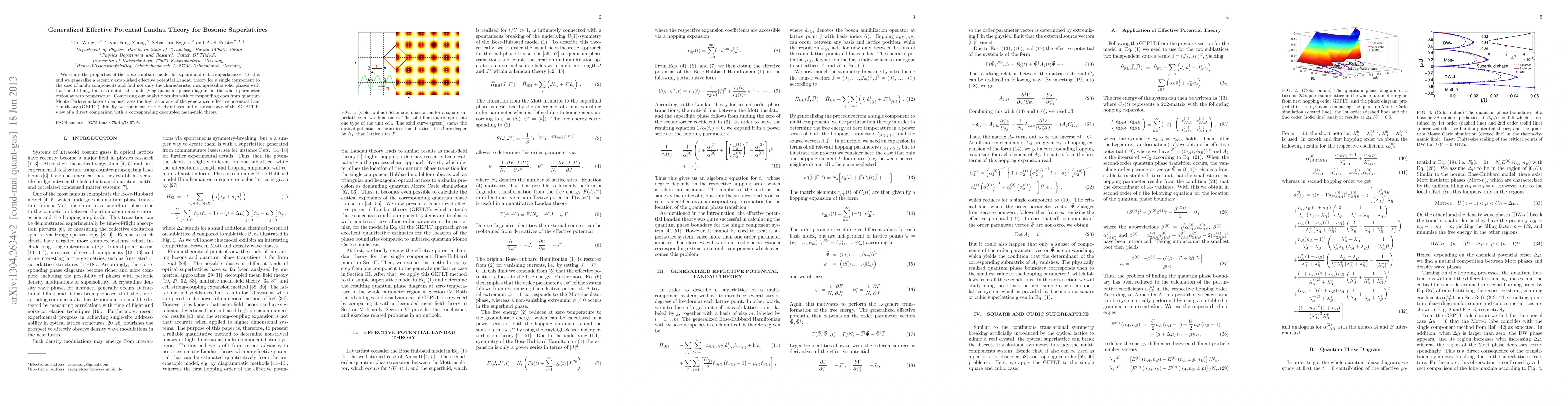 This paper generalizes the effective potential Landau theory to study the Bose-Hubbard model in quadratic optical superlattices, revealing incompressible solid phases and a comprehensive quantum phase diagram. The results align closely with quantum Monte Carlo simulations, highlighting the theory's accuracy and discussing its comparative merits and limitations against decoupled mean-field theory.