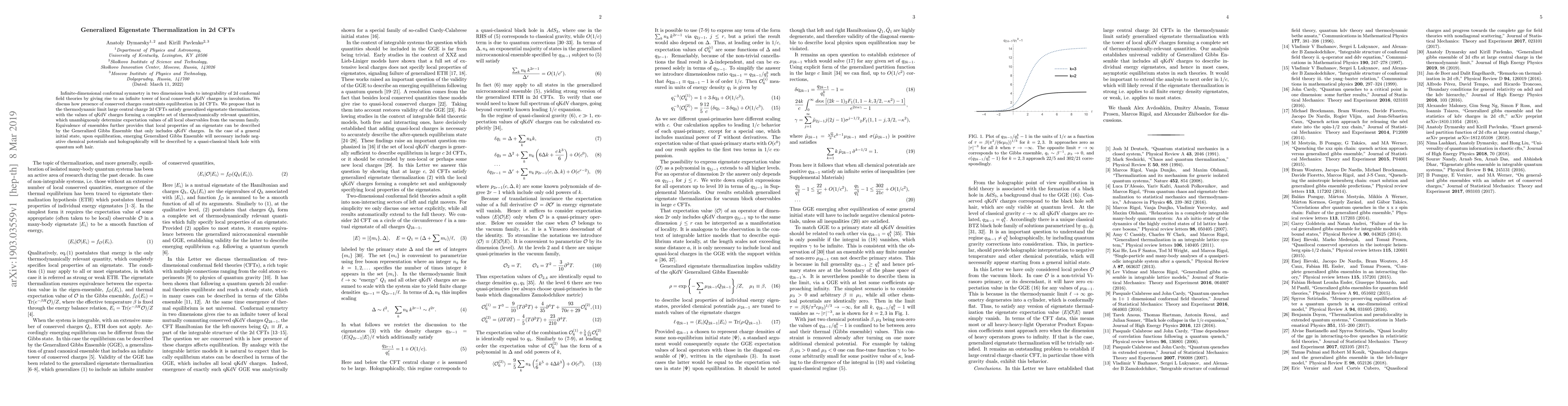 This paper explores how infinite-dimensional conformal symmetry in 2D conformal field theories (CFTs) leads to integrability via an infinite set of local conserved charges. It demonstrates that large central charge 2D CFTs exhibit generalized eigenstate thermalization, where the values of these charges determine equilibrium states and local observables, negating the need for non-local charges.