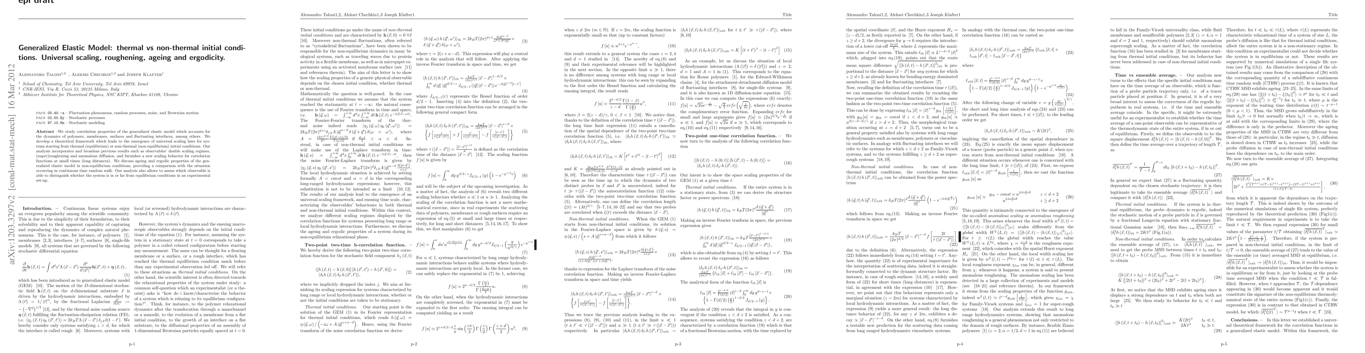 We study correlation properties of the generalized elastic model which accounts for the dynamics of polymers, membranes, surfaces and fluctuating interfaces, among others. We develop a theoretical framework which leads to the emergence of universal scaling laws for systems starting from thermal (equilibrium) or non-thermal (non-equilibrium) initial conditions. Our analysis incorporates and broadens previous results such as observables' double scaling regimes, (super)roughening and anomalous diffusion, and furnishes a new scaling behavior for correlation functions at small times (long distances). We discuss ageing and ergodic properties of the generalized elastic model in non-equilibrium conditions, providing a comparison with the situation occurring in continuous time random walk. Our analysis also allows to assess which observable is able to distinguish whether the system is in or far from equilibrium conditions in an experimental set-up.