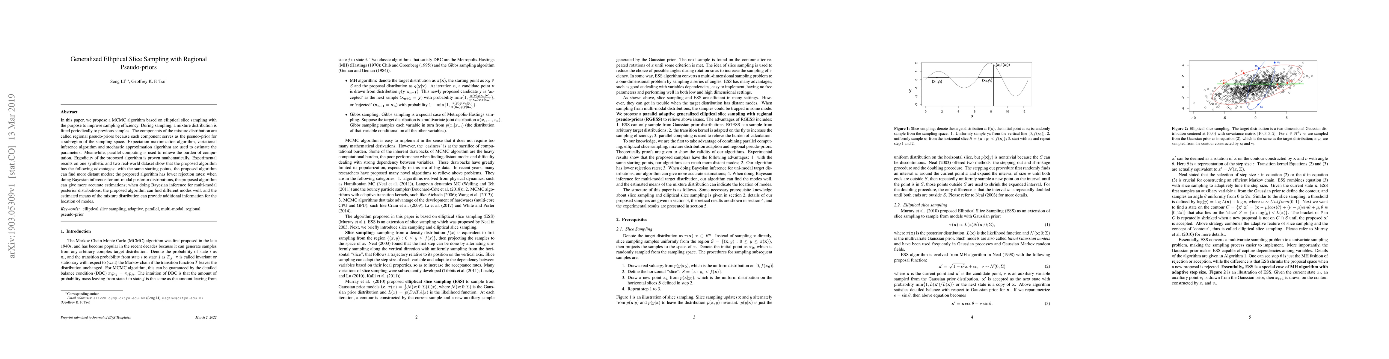 This paper introduces a novel MCMC algorithm based on elliptical slice sampling that enhances sampling efficiency through the use of regional pseudo-priors. The algorithm employs parallel computing and various optimization techniques to estimate parameters, demonstrating improved performance in finding distant modes, lower rejection rates, and more accurate Bayesian inference results.