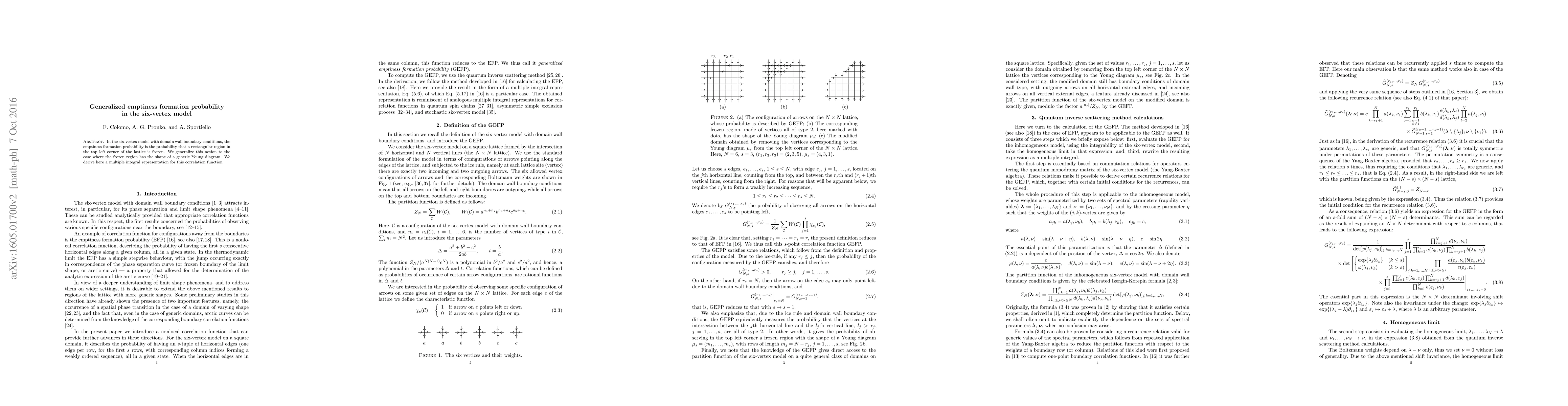 The paper generalizes the emptiness formation probability in the six-vertex model to arbitrary Young diagram shapes, deriving a multiple integral representation for the corresponding correlation function. This extends the traditional rectangular region analysis to more complex lattice configurations.