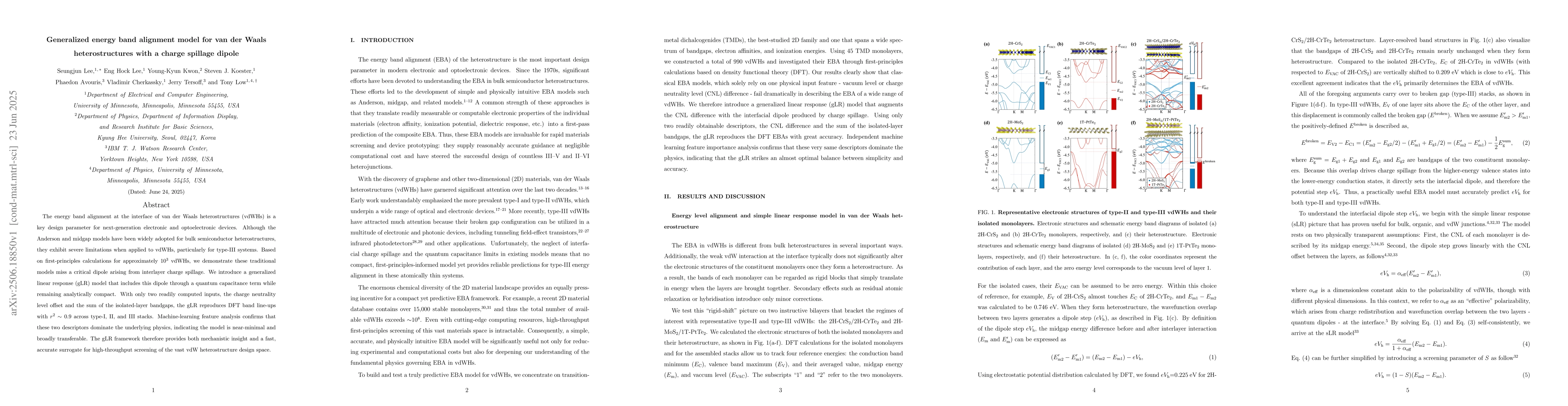 The development of a generalized linear response (gLR) model for energy band alignment in van der Waals heterostructures, incorporating a charge spillage dipole through a quantum capacitance term, achieving high predictive accuracy.