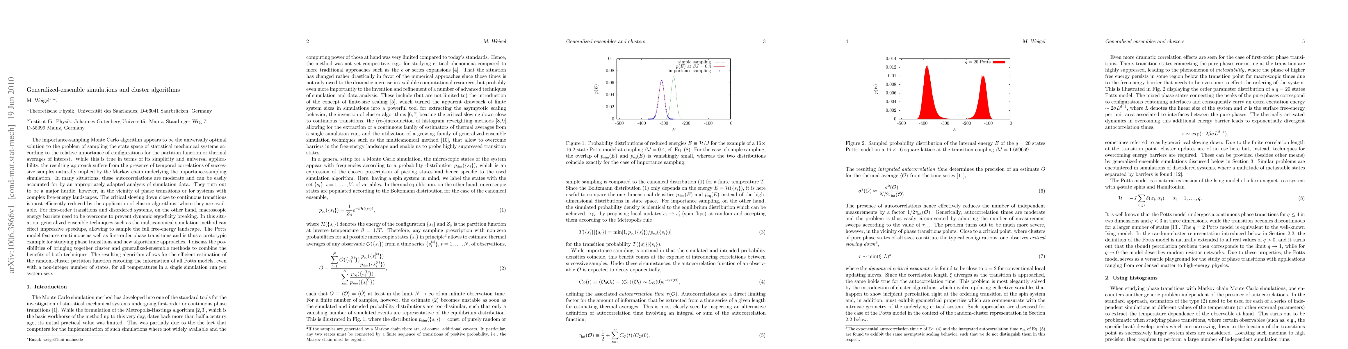 The importance-sampling Monte Carlo algorithm appears to be the universally optimal solution to the problem of sampling the state space of statistical mechanical systems according to the relative importance of configurations for the partition function or thermal averages of interest. While this is true in terms of its simplicity and universal applicability, the resulting approach suffers from the presence of temporal correlations of successive samples naturally implied by the Markov chain underlying the importance-sampling simulation. In many situations, these autocorrelations are moderate and can be easily accounted for by an appropriately adapted analysis of simulation data. They turn out to be a major hurdle, however, in the vicinity of phase transitions or for systems with complex free-energy landscapes. The critical slowing down close to continuous transitions is most efficiently reduced by the application of cluster algorithms, where they are available. For first-order transitions and disordered systems, on the other hand, macroscopic energy barriers need to be overcome to prevent dynamic ergodicity breaking. In this situation, generalized-ensemble techniques such as the multicanonical simulation method can effect impressive speedups, allowing to sample the full free-energy landscape. The Potts model features continuous as well as first-order phase transitions and is thus a prototypic example for studying phase transitions and new algorithmic approaches. I discuss the possibilities of bringing together cluster and generalized-ensemble methods to combine the benefits of both techniques. The resulting algorithm allows for the efficient estimation of the random-cluster partition function encoding the information of all Potts models, even with a non-integer number of states, for all temperatures in a single simulation run per system size.