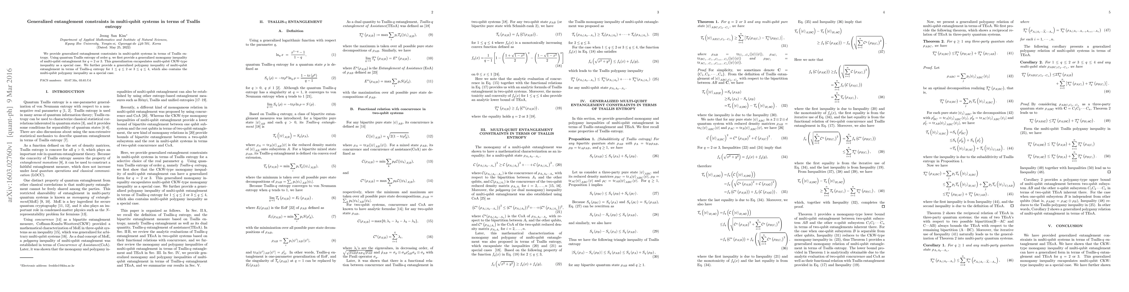 This paper generalizes entanglement constraints for multi-qubit systems using Tsallis entropy, establishing a monogamy inequality for $q=2$ or $3$ and a polygamy inequality for $1 \leq q \leq 2$ or $3 \leq q \leq 4$. It includes existing multi-qubit inequalities as special cases.