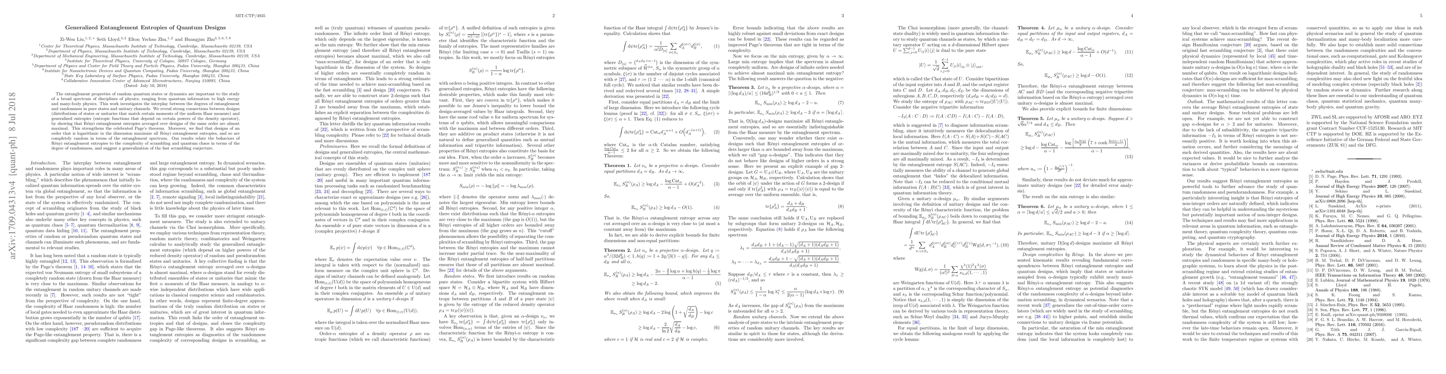 This paper explores the entanglement properties of random quantum states and dynamics, revealing strong connections between quantum designs and generalized entanglement entropies. It shows that R\'enyi entanglement entropies averaged over specific designs are nearly maximal, supporting a generalization of Page's theorem and suggesting a link between randomness and quantum chaos.