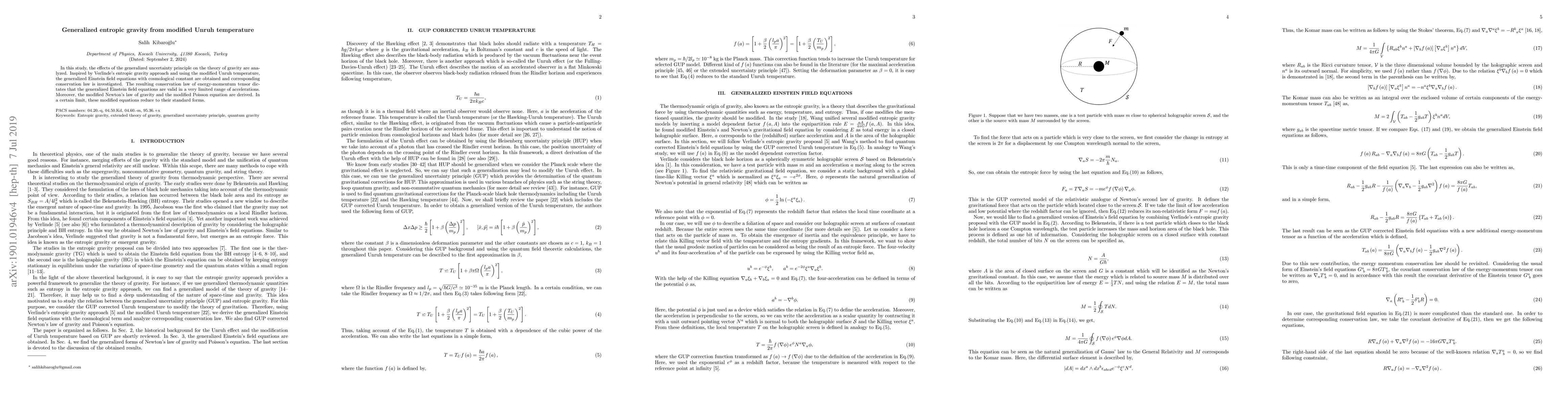 In this study, the effects of the generalized uncertainty principle on the theory of gravity are analyzed. Inspired by Verlinde's entropic gravity approach and using the modified Unruh temperature, the generalized Einstein field equations with cosmological constant are obtained and corresponding conservation law is investigated. The resulting conservation law of energy-momentum tensor dictates that the generalized Einstein field equations are valid in a very limited range of accelerations. Moreover, the modified Newton's law of gravity and the modified Poisson equation are derived. In a certain limit, these modified equations reduce to their standard forms.