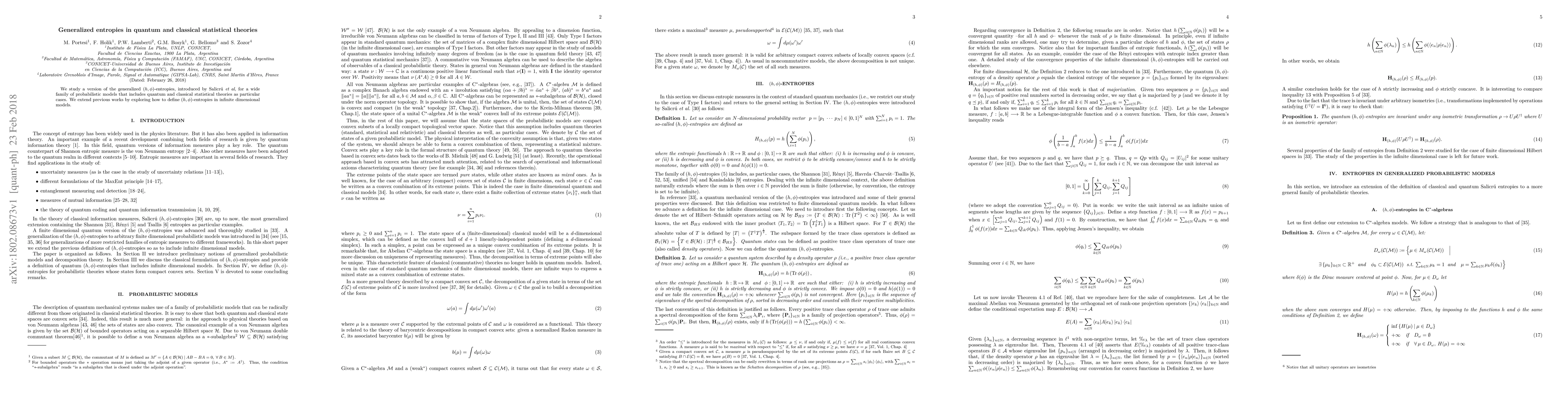 This paper explores the generalized (h, φ)-entropies for both quantum and classical statistical theories, extending previous works to infinite-dimensional probabilistic models. It aims to define these entropies in a broader context beyond finite dimensions.