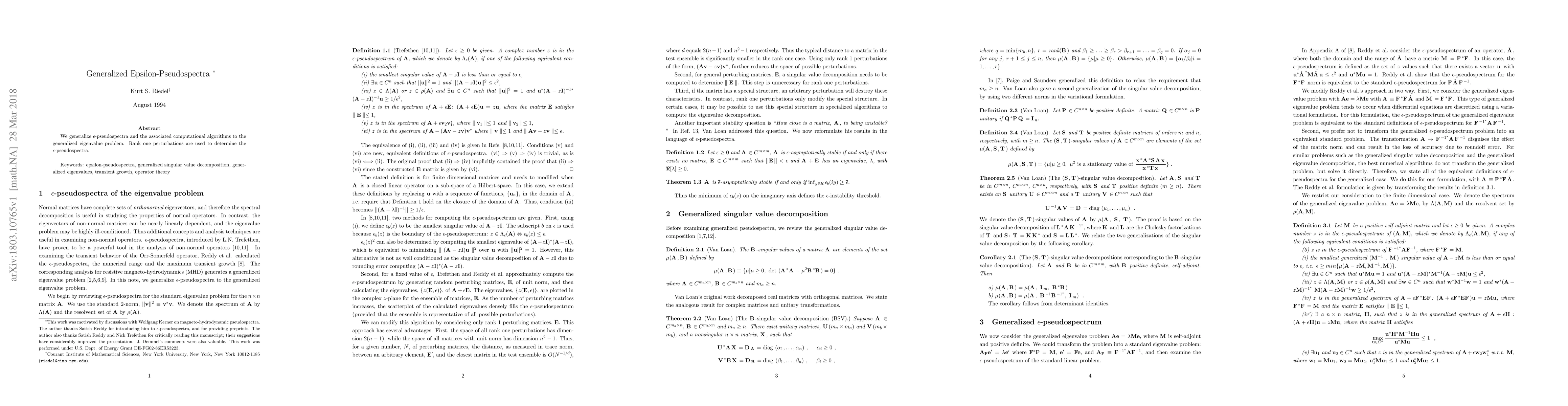 Summary: This paper extends the concept of $\epsilon$-pseudospectra and its computational algorithms to the generalized eigenvalue problem, employing rank one perturbations to define the generalized $\epsilon$-pseudospectra. The study aims to provide a robust framework for analyzing the stability of solutions in generalized eigenvalue problems.