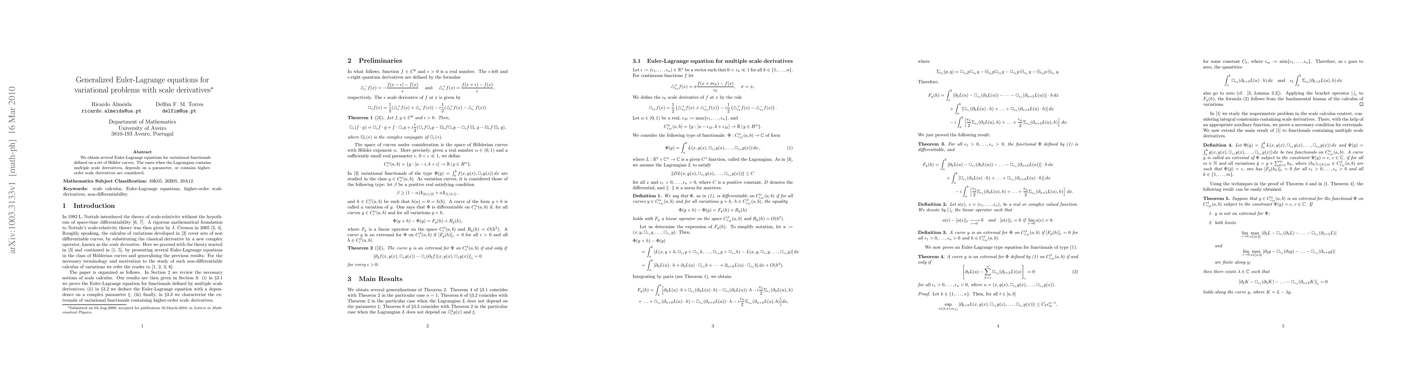 The paper presents a rigorous mathematical framework for generalized Euler-Lagrange equations incorporating scale derivatives, which expands the classical calculus of variations.