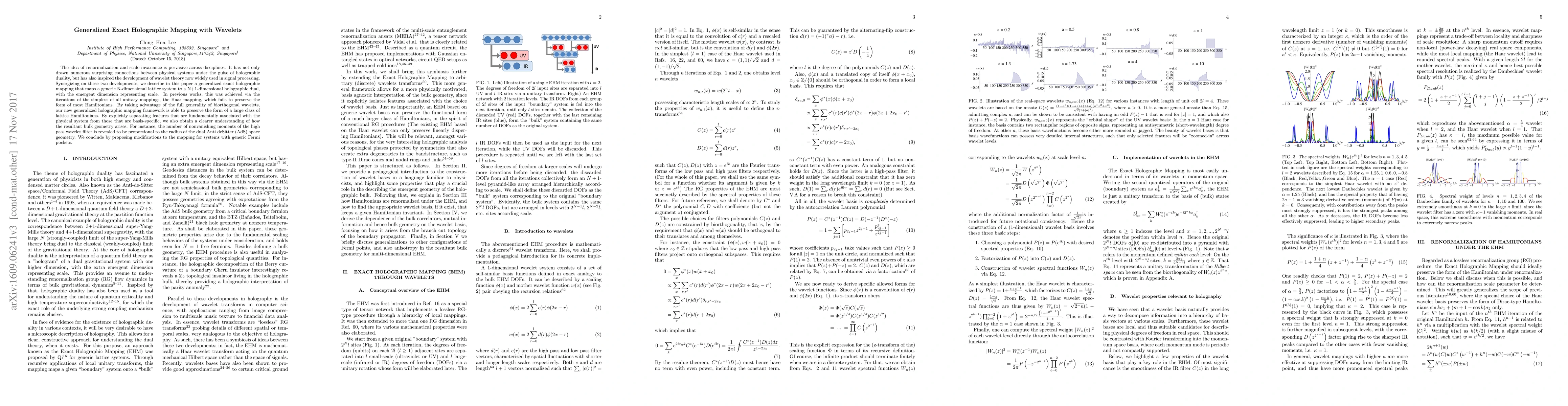 The idea of renormalization and scale invariance is pervasive across disciplines. It has not only drawn numerous surprising connections between physical systems under the guise of holographic duality, but has also inspired the development of wavelet theory now widely used in signal processing. Synergizing on these two developments, we describe in this paper a generalized exact holographic mapping that maps a generic N-dimensional lattice system to a N+1-dimensional holographic dual, with the emergent dimension representing scale. In previous works, this was achieved via the iterations of the simplest of all unitary mappings, the Haar mapping, which fails to preserve the form of most Hamiltonians. By taking advantage of the full generality of biorthogonal wavelets, our new generalized holographic mapping framework is able to preserve the form of a large class of lattice Hamiltonians. By explicitly separating features that are fundamentally associated with the physical system from those that are basis-specific, we also obtain a clearer understanding of how the resultant bulk geometry arises. For instance, the number of nonvanishing moments of the high pass wavelet filter is revealed to be proportional to the radius of the dual Anti deSitter (AdS) space geometry. We conclude by proposing modifications to the mapping for systems with generic Fermi pockets.