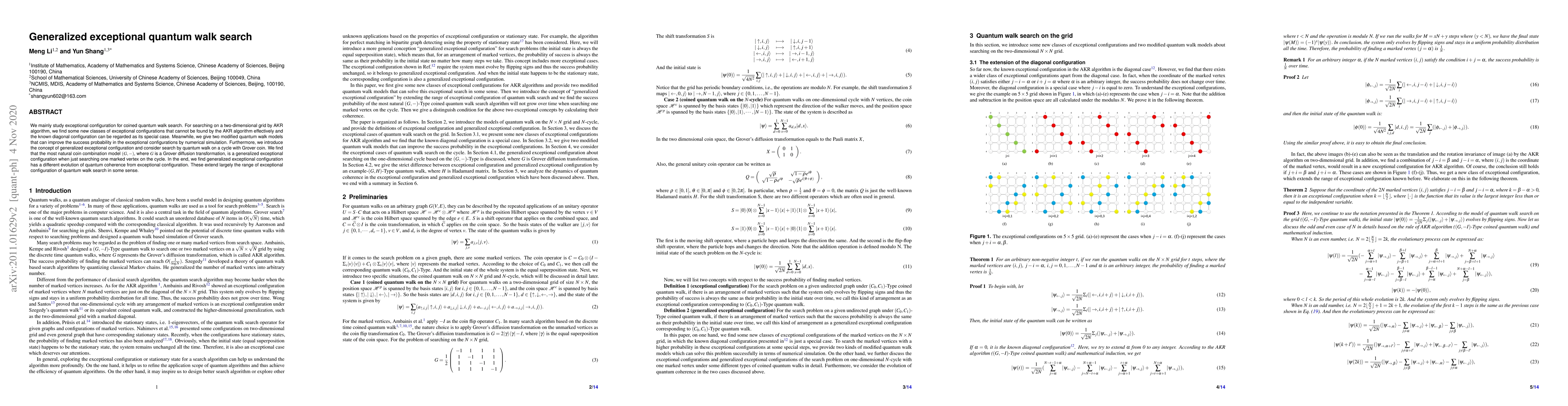 This paper explores new exceptional configurations in quantum walk search algorithms, particularly on two-dimensional grids and cycles. It introduces modified quantum walk models to enhance success probability and identifies generalized exceptional configurations, showing distinct evolution of quantum coherence compared to traditional exceptional configurations.