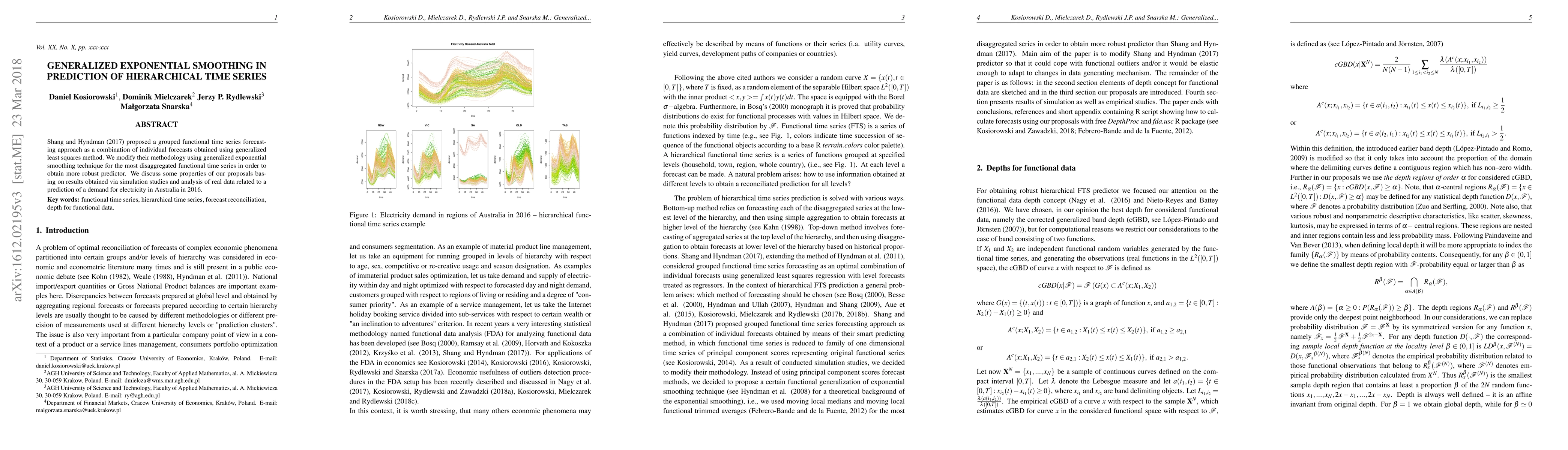 Shang and Hyndman (2017) proposed a grouped functional time series forecasting approach as a combination of individual forecasts obtained using generalized least squares method. We modify their methodology using generalized exponential smoothing technique for the most disaggregated functional time series in order to obtain more robust predictor. We discuss some properties of our proposals basing on results obtained via simulation studies and analysis of real data related to a prediction of a demand for electricity in Australia in 2016.
