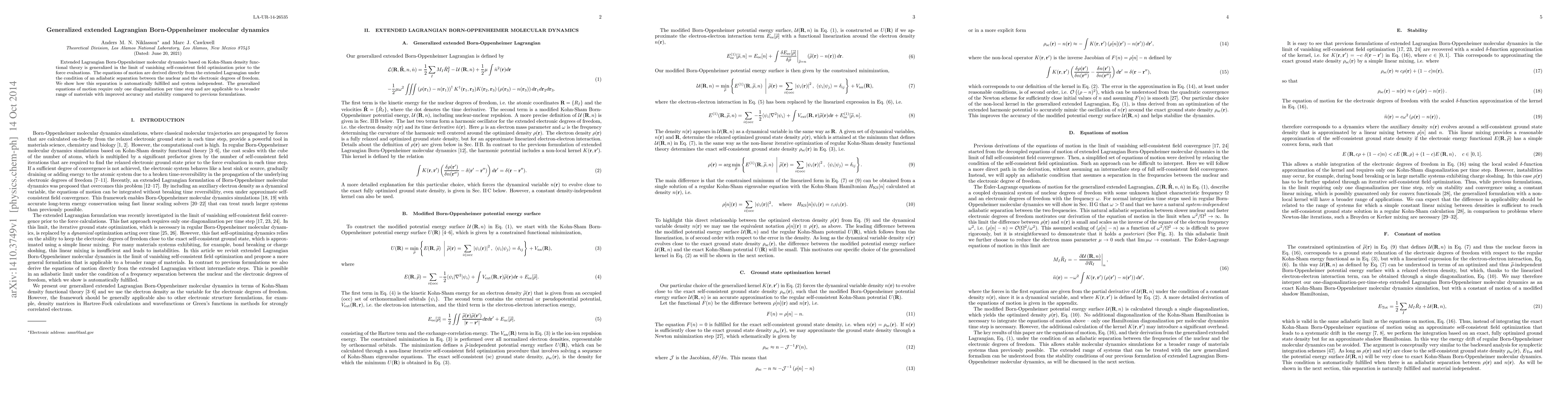 A generalized extended Lagrangian density for molecular dynamics simulations is presented.