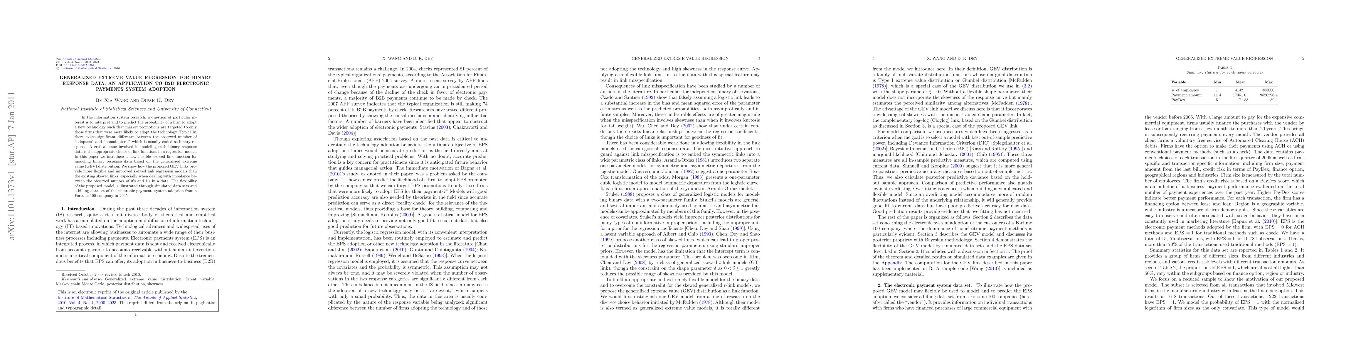 In the information system research, a question of particular interest is to interpret and to predict the probability of a firm to adopt a new technology such that market promotions are targeted to only those firms that were more likely to adopt the technology. Typically, there exists significant difference between the observed number of ``adopters'' and ``nonadopters,'' which is usually coded as binary response. A critical issue involved in modeling such binary response data is the appropriate choice of link functions in a regression model. In this paper we introduce a new flexible skewed link function for modeling binary response data based on the generalized extreme value (GEV) distribution. We show how the proposed GEV links provide more flexible and improved skewed link regression models than the existing skewed links, especially when dealing with imbalance between the observed number of 0's and 1's in a data. The flexibility of the proposed model is illustrated through simulated data sets and a billing data set of the electronic payments system adoption from a Fortune 100 company in 2005.