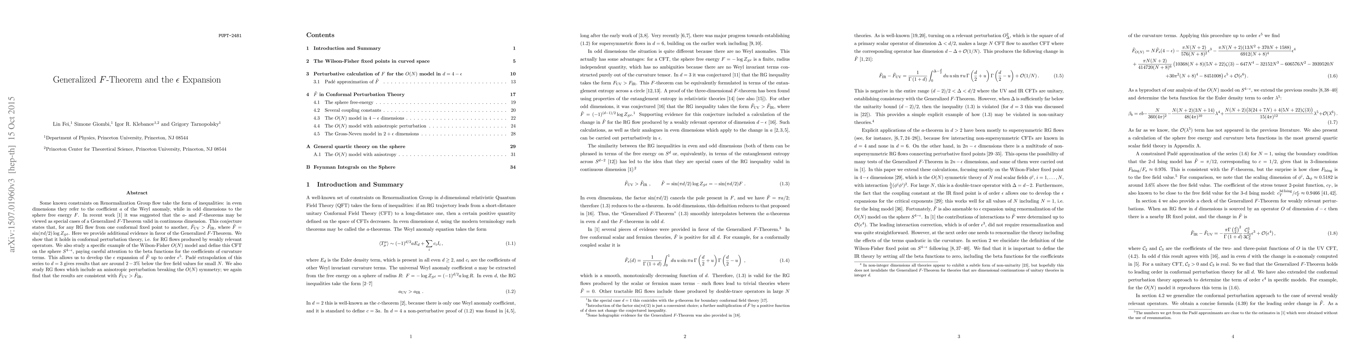 Some known constraints on Renormalization Group flow take the form of inequalities: in even dimensions they refer to the coefficient $a$ of the Weyl anomaly, while in odd dimensions to the sphere free energy $F$. In recent work arXiv:1409.1937 it was suggested that the $a$- and $F$-theorems may be viewed as special cases of a Generalized $F$-Theorem valid in continuous dimension. This conjecture states that, for any RG flow from one conformal fixed point to another, $\tilde F_{\rm UV} > \tilde F_{\rm IR}$, where $\tilde F=\sin (\pi d/2)\log Z_{S^d}$. Here we provide additional evidence in favor of the Generalized $F$-Theorem. We show that it holds in conformal perturbation theory, i.e. for RG flows produced by weakly relevant operators. We also study a specific example of the Wilson-Fisher $O(N)$ model and define this CFT on the sphere $S^{4-\epsilon}$, paying careful attention to the beta functions for the coefficients of curvature terms. This allows us to develop the $\epsilon$ expansion of $\tilde F$ up to order $\epsilon^5$. Pade extrapolation of this series to $d=3$ gives results that are around $2-3\%$ below the free field values for small $N$. We also study RG flows which include an anisotropic perturbation breaking the $O(N)$ symmetry; we again find that the results are consistent with $\tilde F_{\rm UV} > \tilde F_{\rm IR}$.