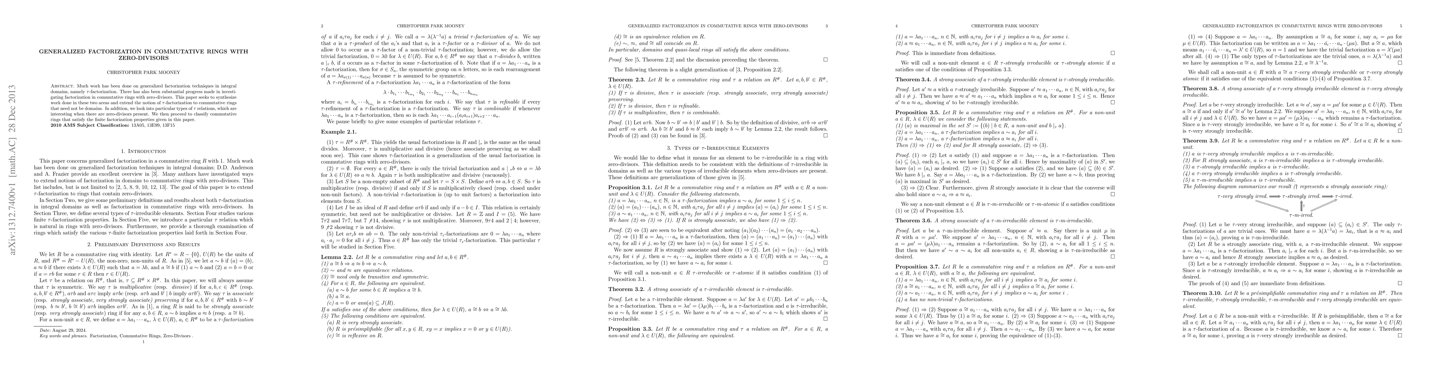 Much work has been done on generalized factorization techniques in integral domains, namely $\tau$-factorization. There has also been substantial progress made in investigating factorization in commutative rings with zero-divisors. This paper seeks to synthesize work done in these two areas and extend the notion of $\tau$-factorization to commutative rings that need not be domains. In addition, we look into particular types of $\tau$ relations, which are interesting when there are zero-divisors present. We then proceed to classify commutative rings that satisfy the finite factorization properties given in this paper.