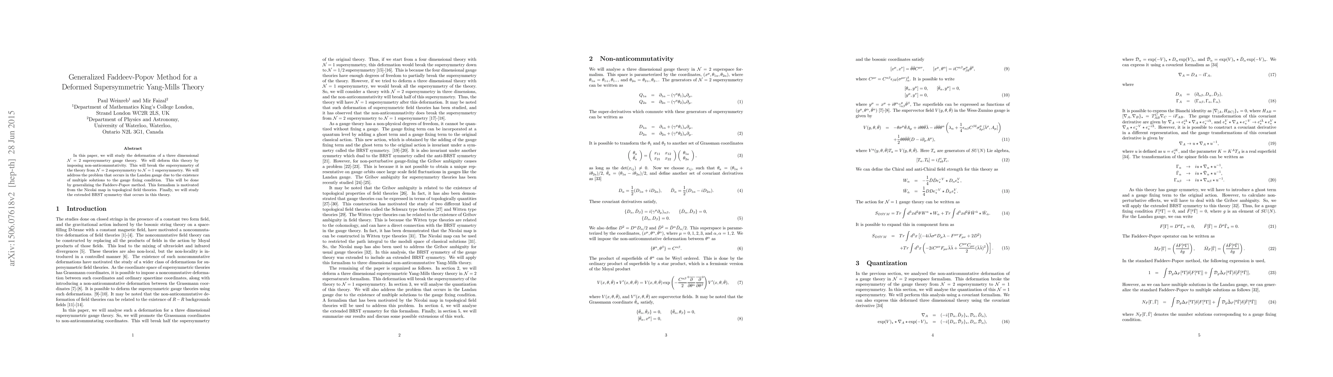 This paper develops a new method for a deformed supersymmetric Yang-Mills theory that addresses issues with multiple solutions to the gauge fixing condition, resulting in an extended BRST symmetry.