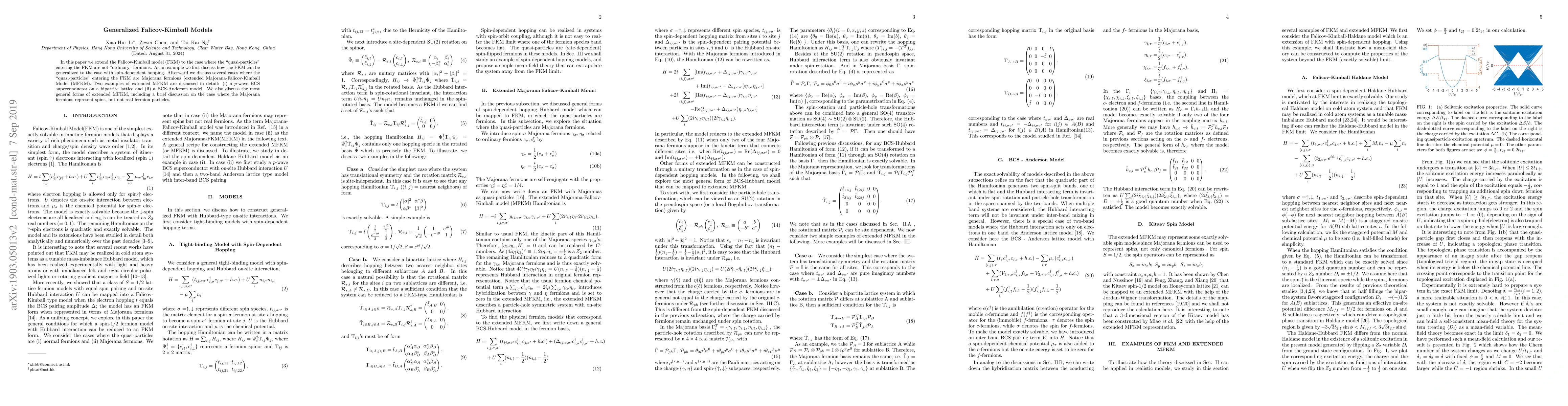 This paper extends the Falicov-Kimball model to include non-ordinary fermions, such as spin-dependent hopping and Majorana fermions. It explores detailed examples like $p$-wave BCS superconductors and BCS-Anderson models within the generalized framework.