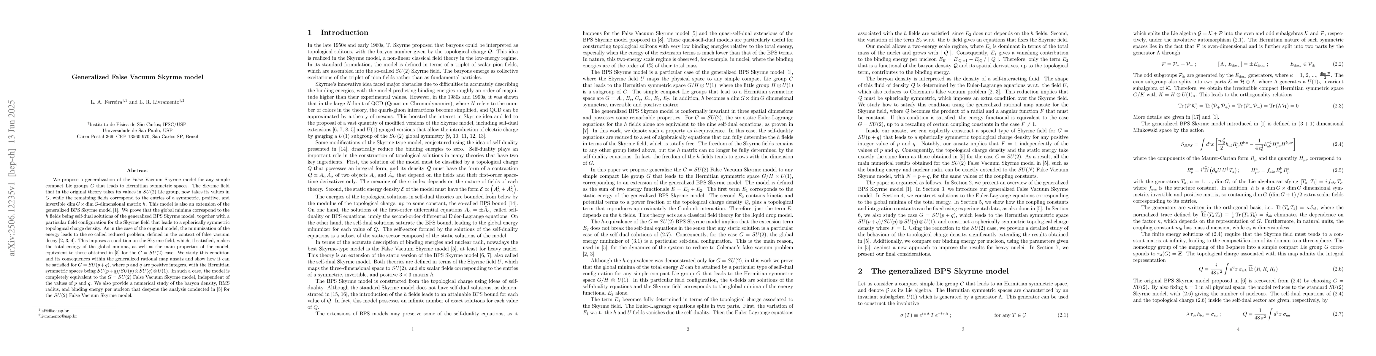 The generalized False Vacuum Skyrm model provides a new framework for describing nuclear physics, extending the results of the original G = SU(2) model.