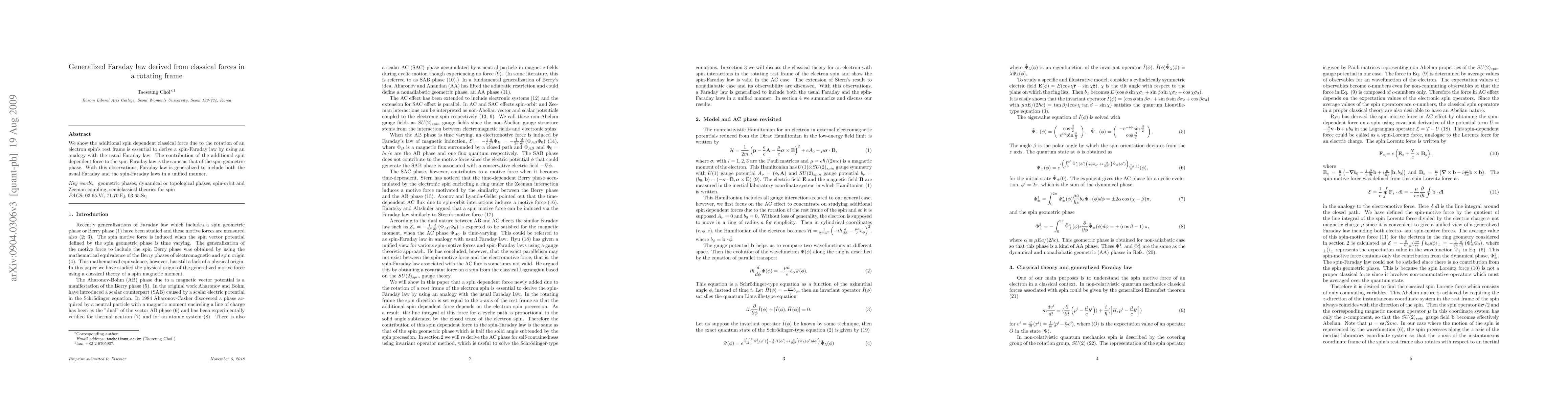 We show the additional spin dependent classical force due to the rotation of an electron spin's rest frame is essential to derive a spin-Faraday law by using an analogy with the usual Faraday law. The contribution of the additional spin dependent force to the spin-Faraday law is the same as that of the spin geometric phase. With this observations, Faraday law is generalized to include both the usual Faraday and the spin-Faraday laws in a unified manner.