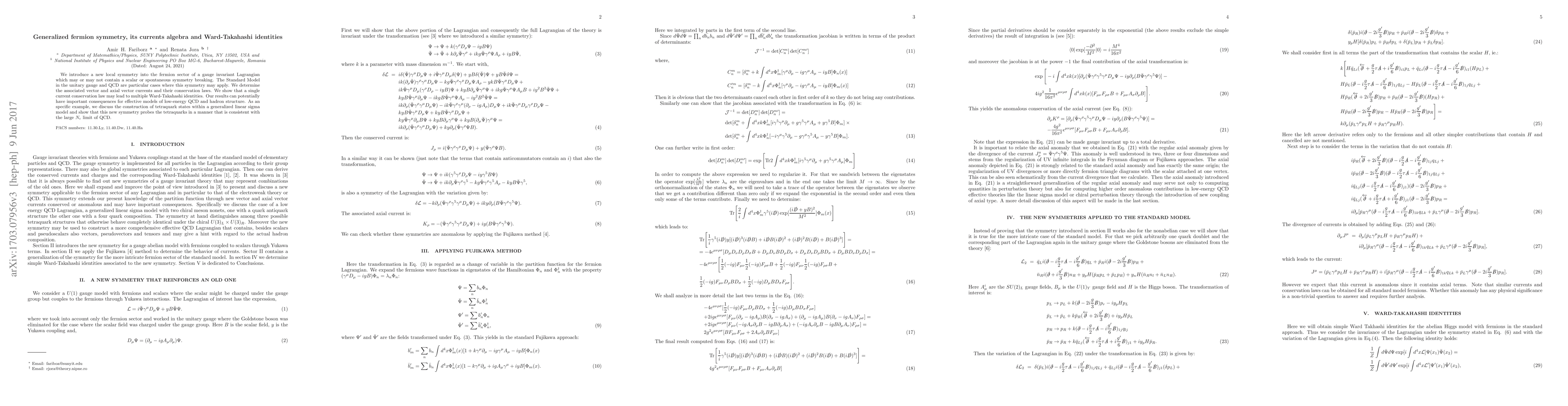 We introduce a new local symmetry into the fermion sector of a gauge invariant Lagrangian which may or may not contain a scalar or spontaneous symmetry breaking. The Standard Model in the unitary gauge and QCD are particular cases where this symmetry may apply. We determine the associated vector and axial vector currents and their conservation laws. We show that a single current conservation law may lead to multiple Ward-Takahashi identities. Our results can potentially have important consequences for effective models of low-energy QCD and hadron structure. As an specific example, we discuss the construction of tetraquark states within a generalized linear sigma model and show that this new symmetry probes the tetraquarks in a manner that is consistent with the large $N_c$ limit of QCD.