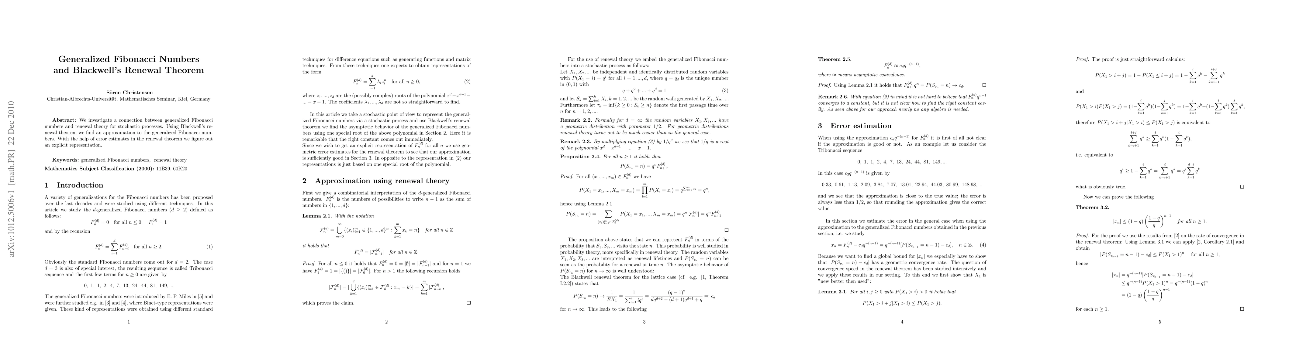 This paper explores the link between generalized Fibonacci numbers and stochastic processes through Blackwell's renewal theorem, providing an approximation and an explicit representation of the Fibonacci numbers with error estimates.