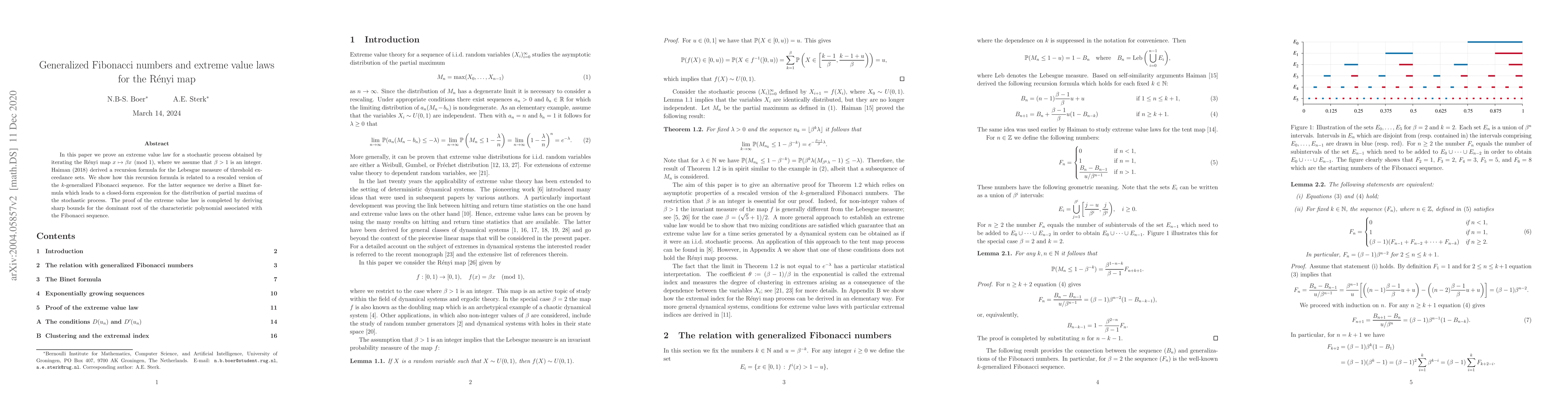 This paper proves an extreme value law for a stochastic process generated by the Rnyi map, relating it to the k-generalized Fibonacci sequence and deriving a closed-form expression for partial maxima distribution.