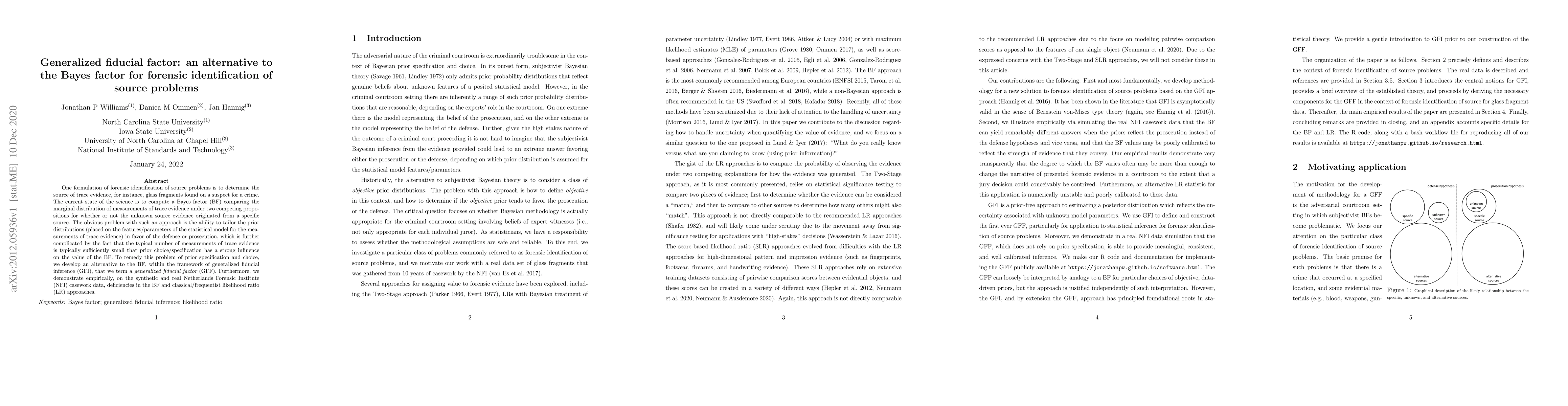 Researchers develop an alternative to Bayes factors for forensic identification of source problems, called a generalized fiducial factor, which can better handle prior distribution tailoring and small sample sizes.